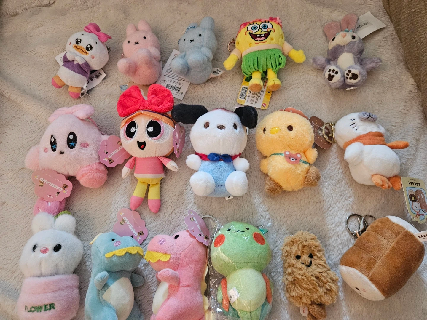 I have a selection of adorable plush keychains for sale! They're all in great condition (new) and ready to add some charm to your keys or bag.