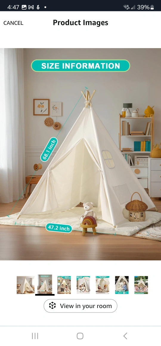 Selling a brand new SumbaBaby Teepee Tent for kids! It comes in its original box and includes all components. This natural cotton canvas teepee play tent is perfect for indoor and outdoor fun for girls and boys. It's ASTM certified for safe playing. The tent is 68.1 inches tall and 47.2 inches wide. Makes a great gift!