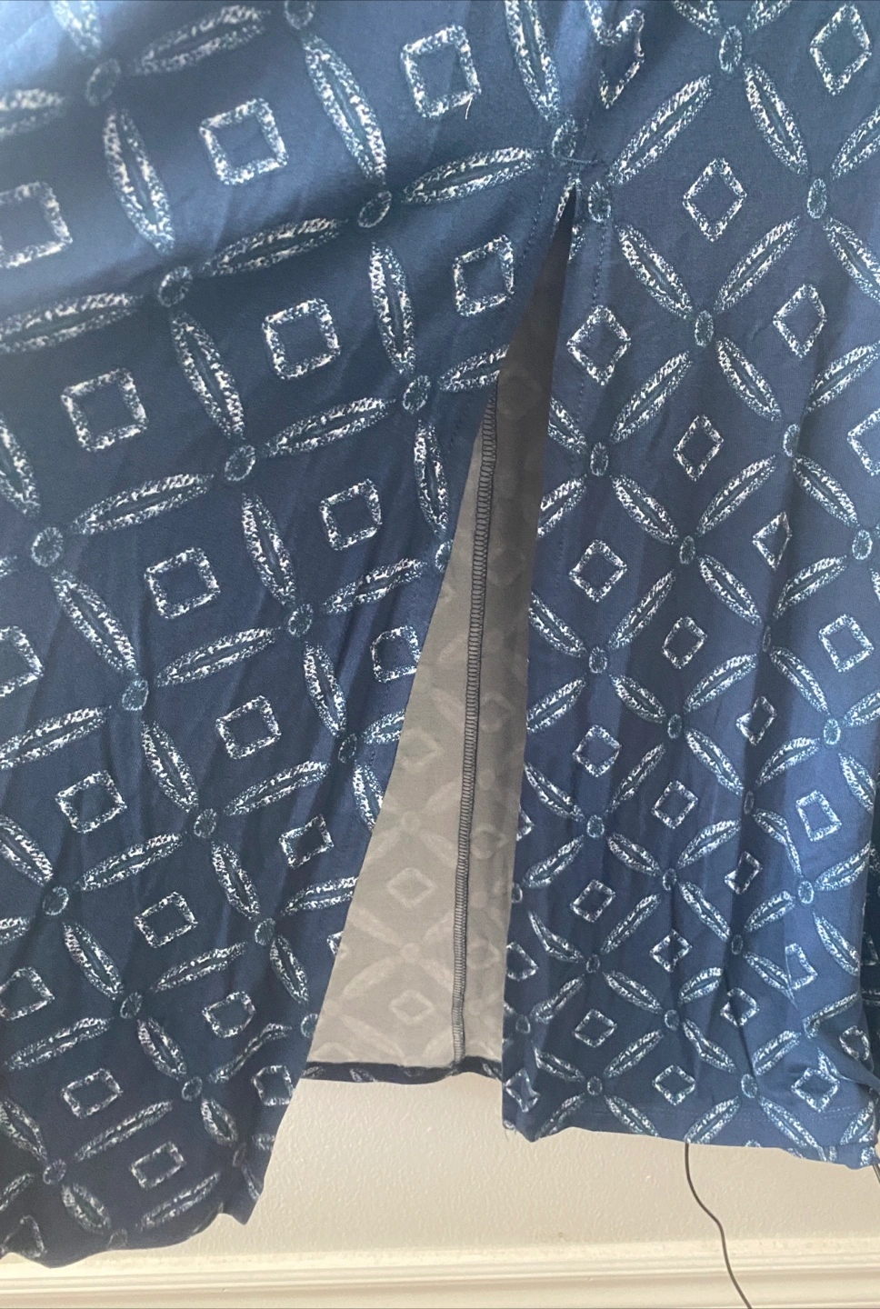 A lovely blue patterned tunic from Joe Fresh! It's a size small and in great condition. Perfect for a casual day out or dressed up for an evening occasion