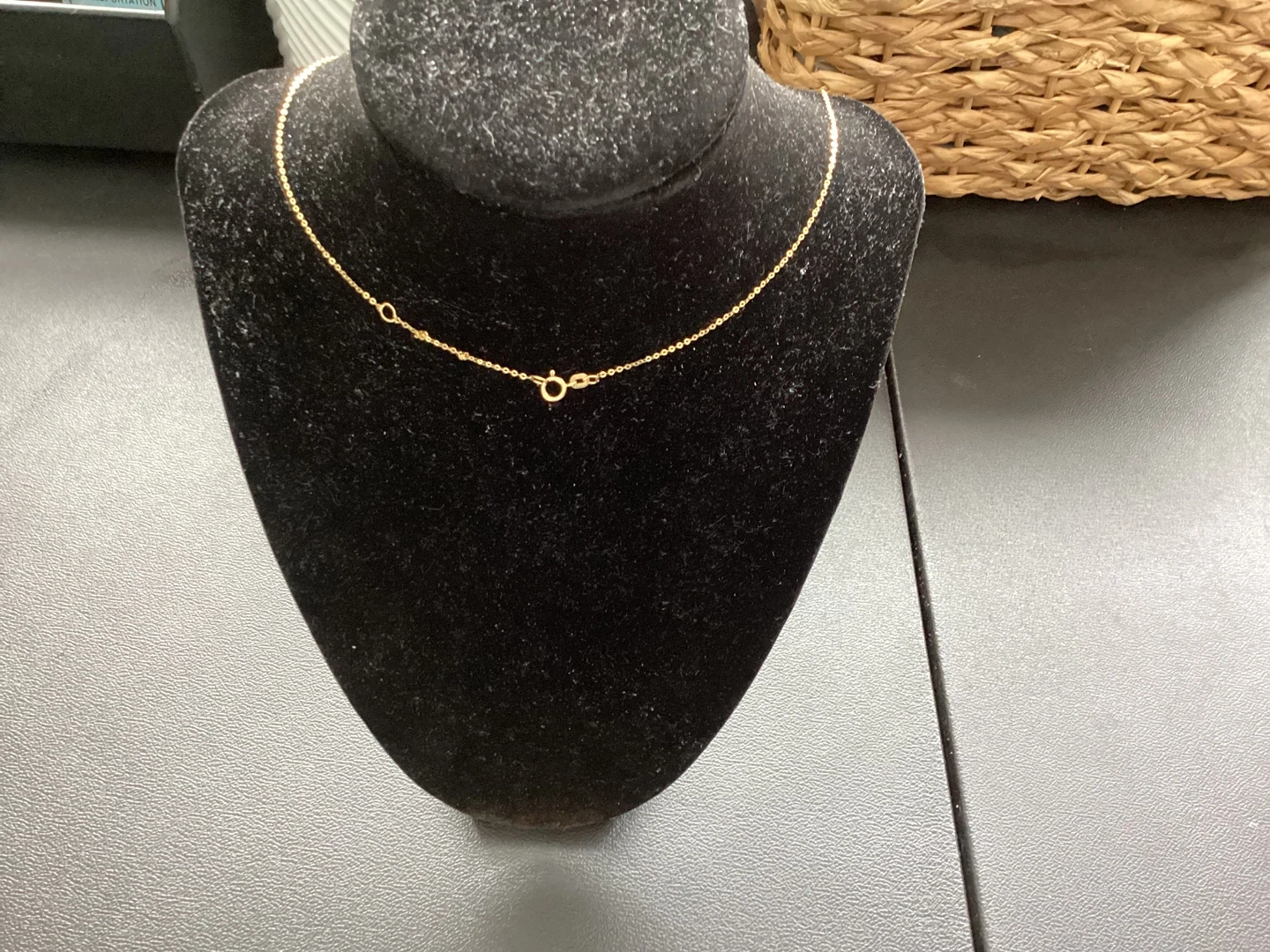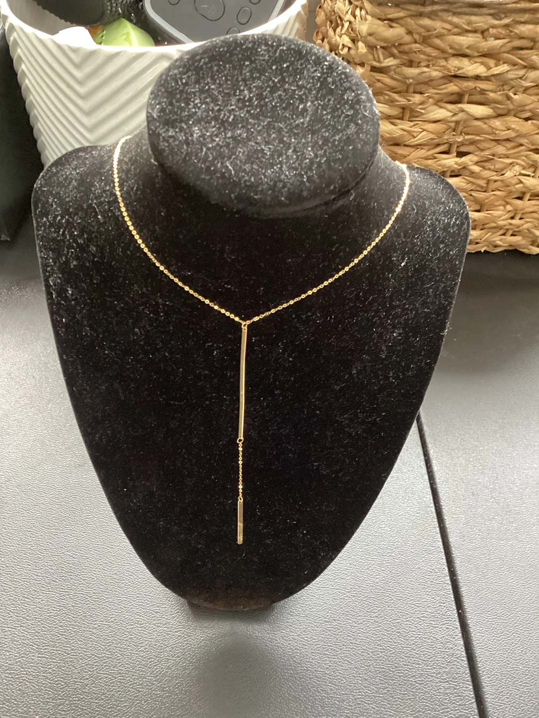 Selling a simple gold necklace! It's in great condition and ready to wear. It's a delicate and stylish piece that can be worn with any outfit