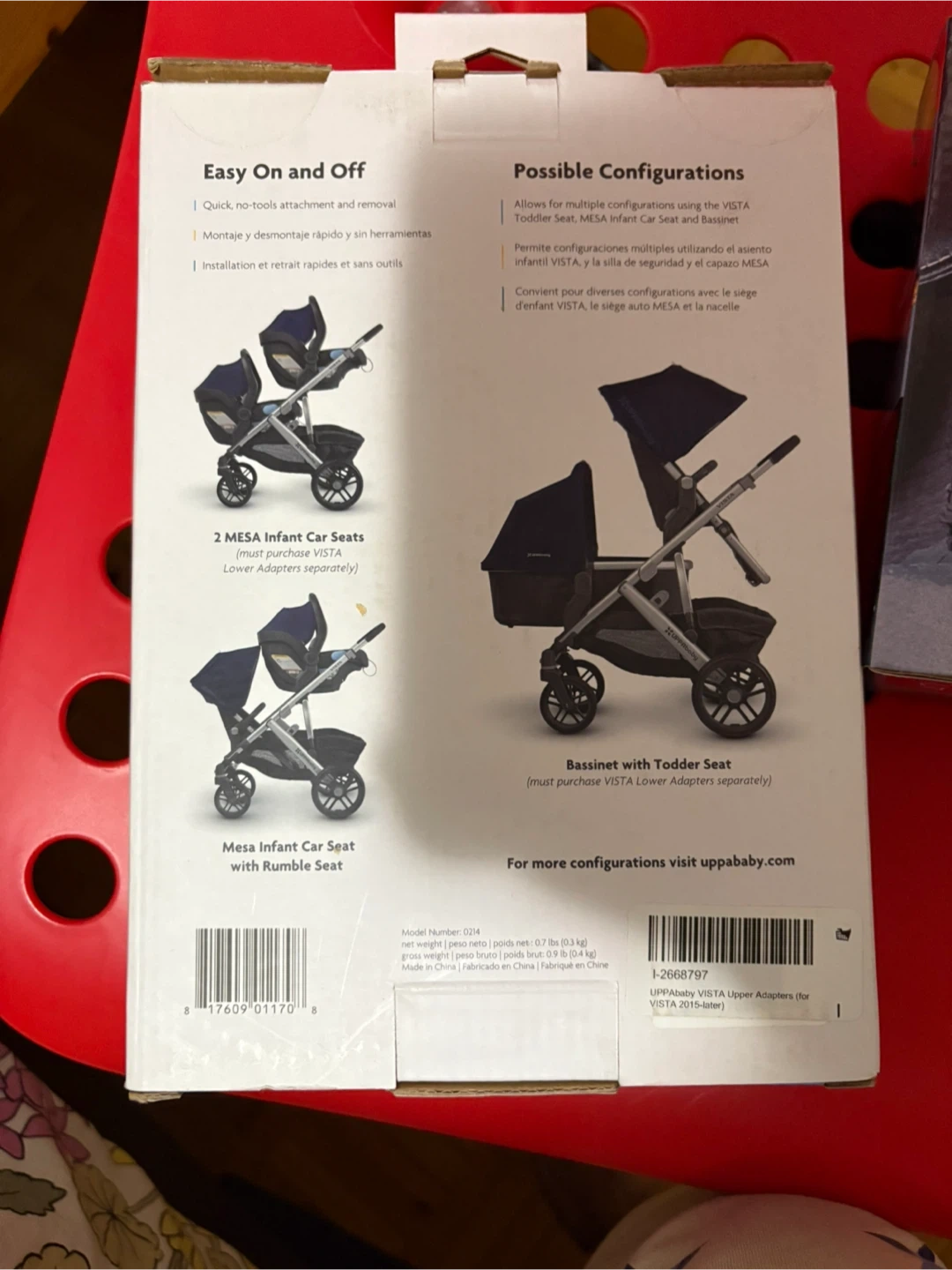 Selling a set of UPPAbaby VISTA Upper Adapters, compatible with VISTA models from 2015 and later, as well as MESA car seats. These adapters allow for multiple configurations with the VISTA Toddler Seat, MESA Infant Car Seat, and Bassinet. The box is included!