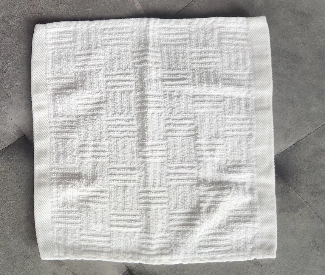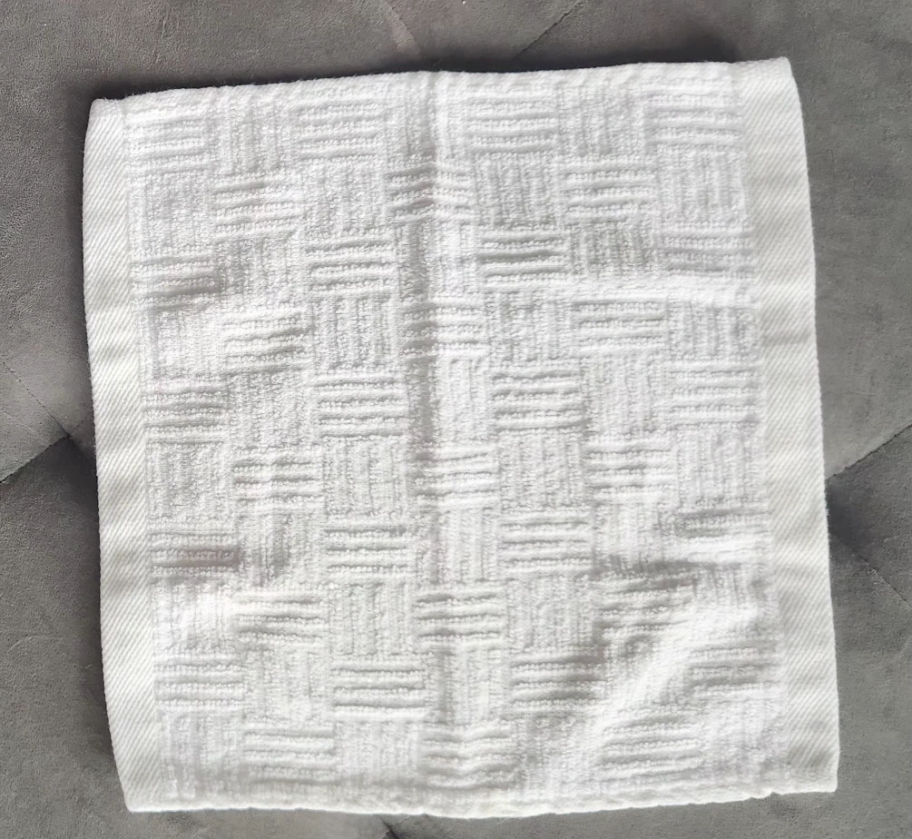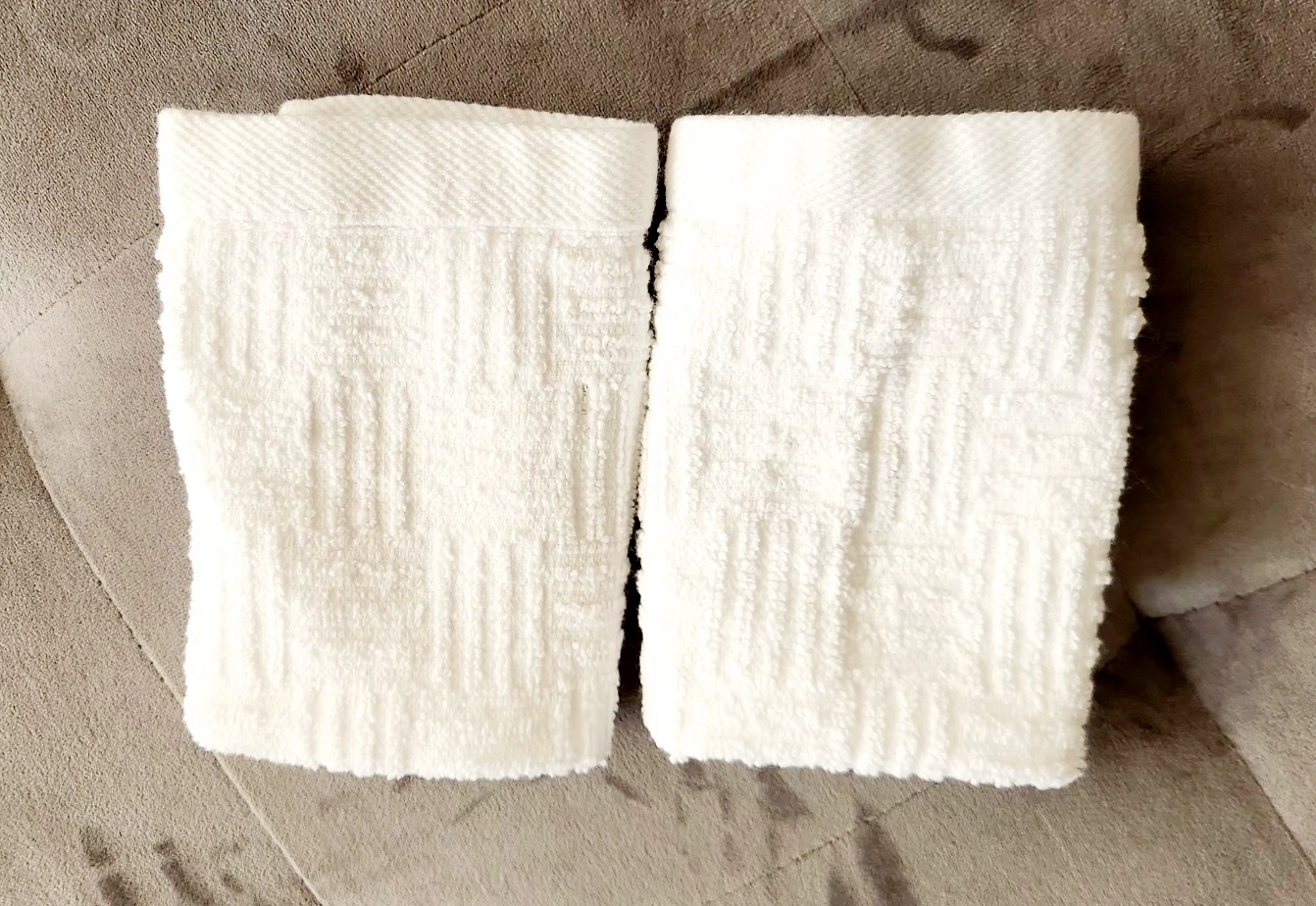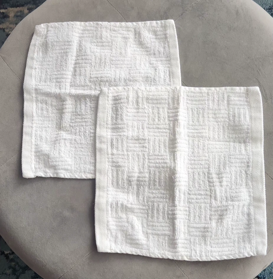 Set of 3 white washcloths (photos only shows 2 but is a set of 3). Simple textured design. Absorbant material. Great for everyday or decorative use. Never been used except for decorative purposes. No rips or stains.
