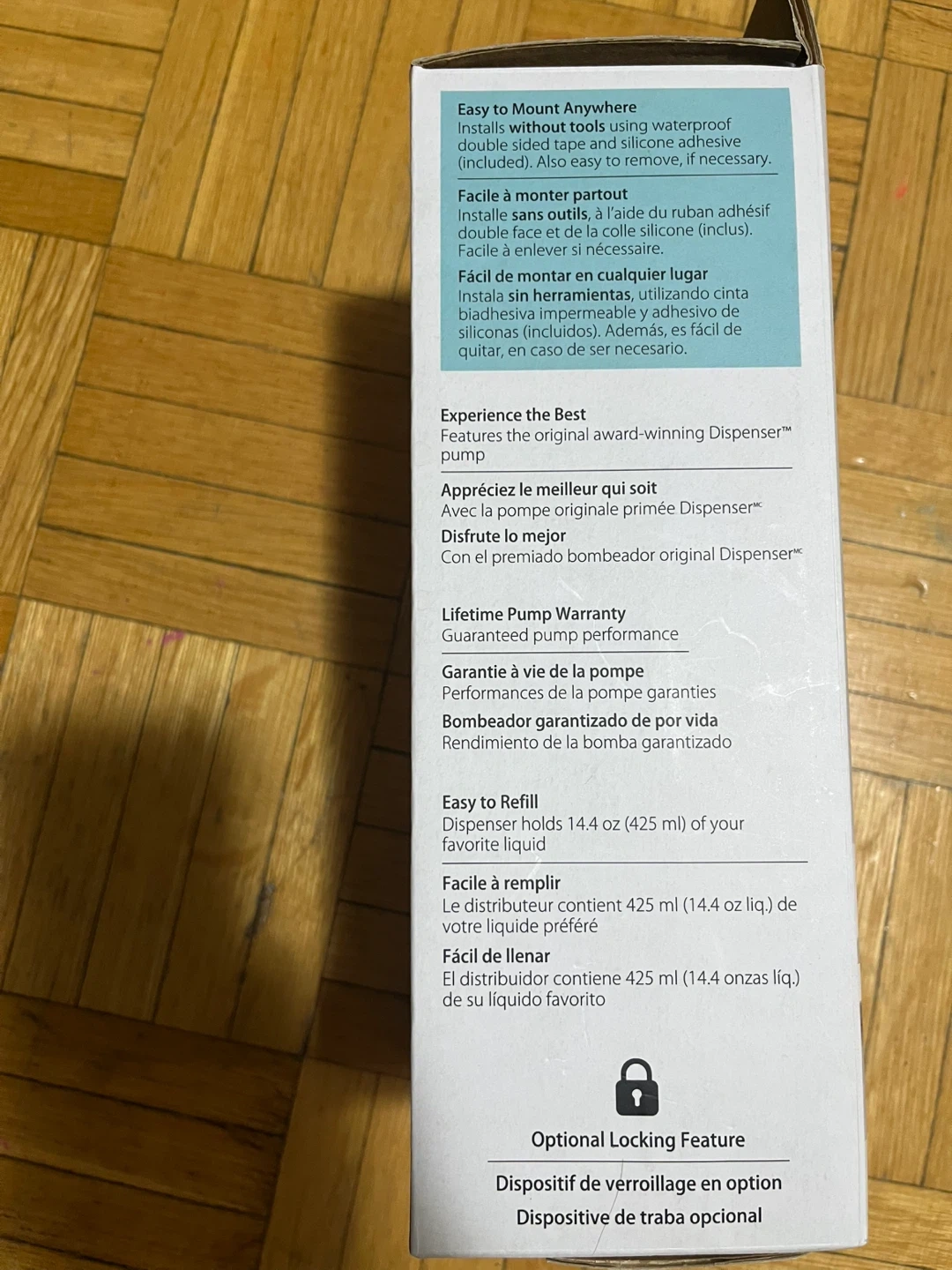 This Better Living WAVE soap dispenser offers convenient single-handed precision dispensing. It holds 14.4 oz (425 ml) of your favourite liquid. It's easy to mount anywhere with waterproof double-sided tape and silicone adhesive.smoke free and pet free