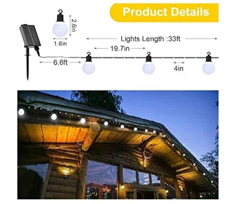 NEW Solar String Lights Outdoor 20 G40 Bulbs Waterproof 33ft