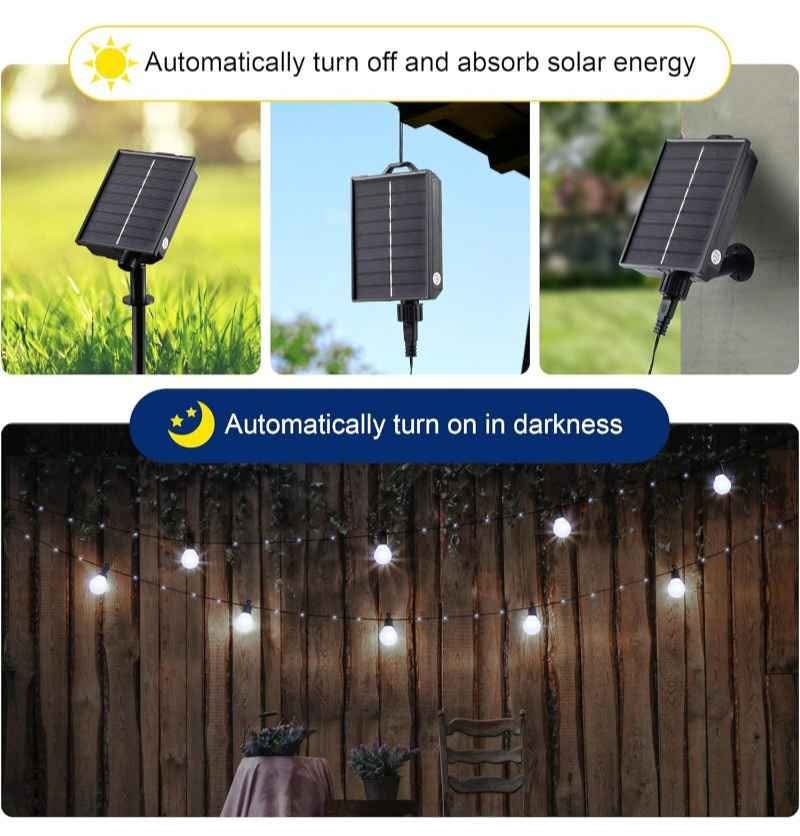 NEW Solar String Lights Outdoor 20 G40 Bulbs Waterproof 33ft
