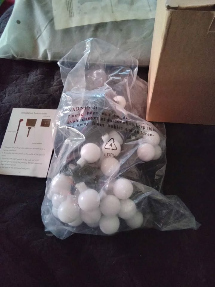 These are new ATHZABOK brand outdoor solar string lights with 20 G40 bulbs, covering 33 feet. They are waterproof (IP65) and shatterproof, made from durable ABS plastic, and can withstand high temperatures, snow, and frost. The lights feature a premium solar panel that can be charged via USB if sunlight is insufficient. They offer 8 lighting modes and a memory function. Charging for 6-8 hours in the sun provides 8-14 hours of light. Installation is easy: simply turn on the switch and place them as desired – stake them in the ground, set them on a table, mount them on a wall, or hang them up. Perfect for decorating balconies, backyards, porches, parties, gardens, and gazebos. Located in Crowsnest Pass.