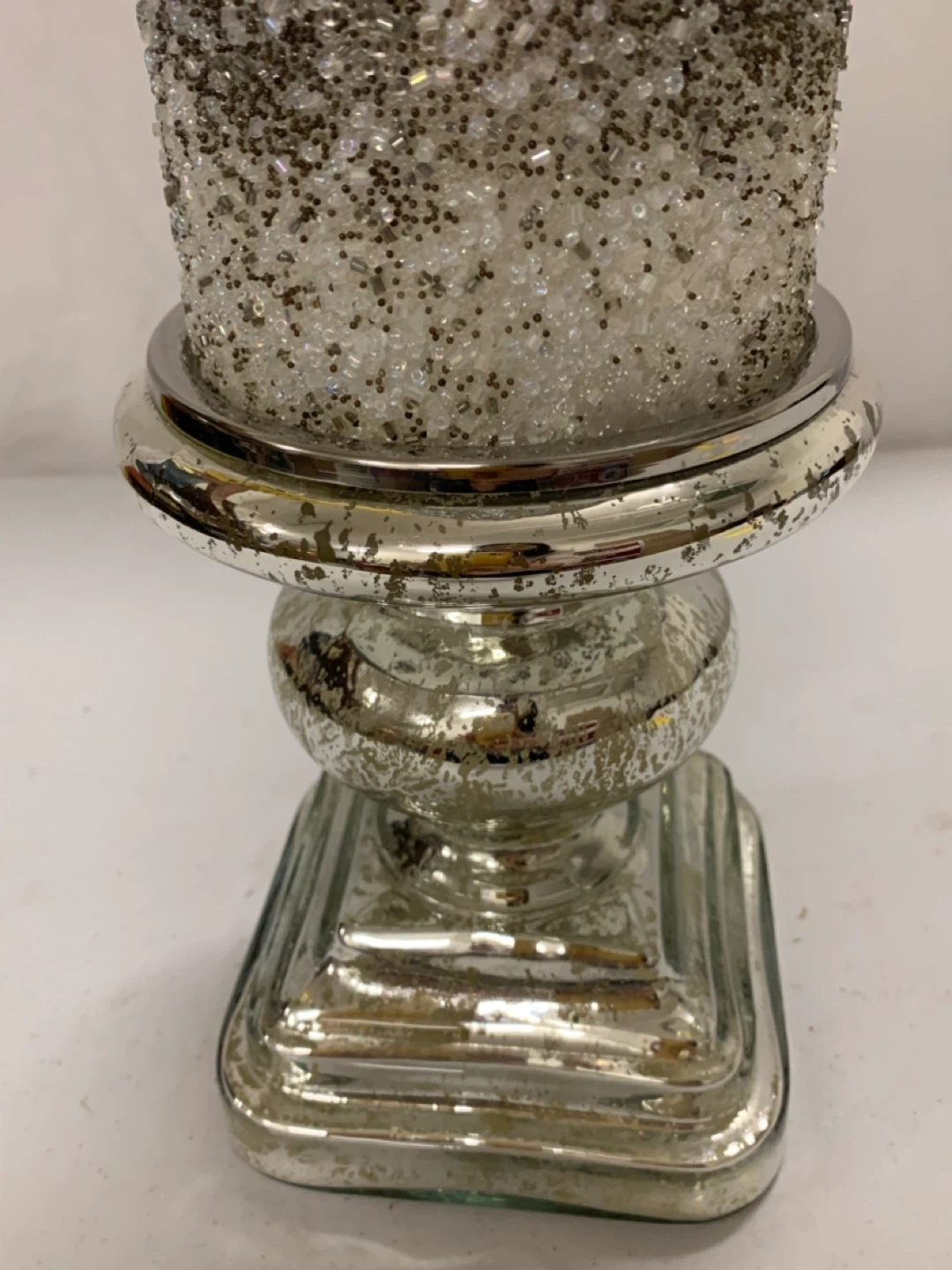 Comes with the large beaded glitter candle included, with light use (see the photo).