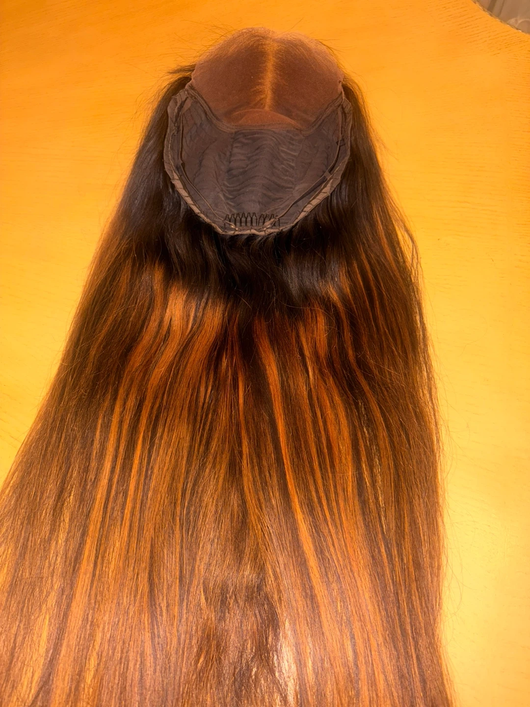 Dark Root Brown Balayage Highlight 7x5 glueless Lace Front Wig