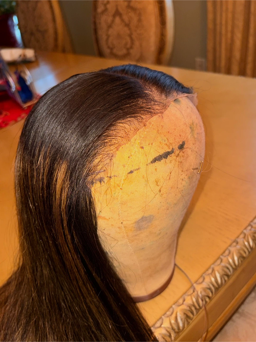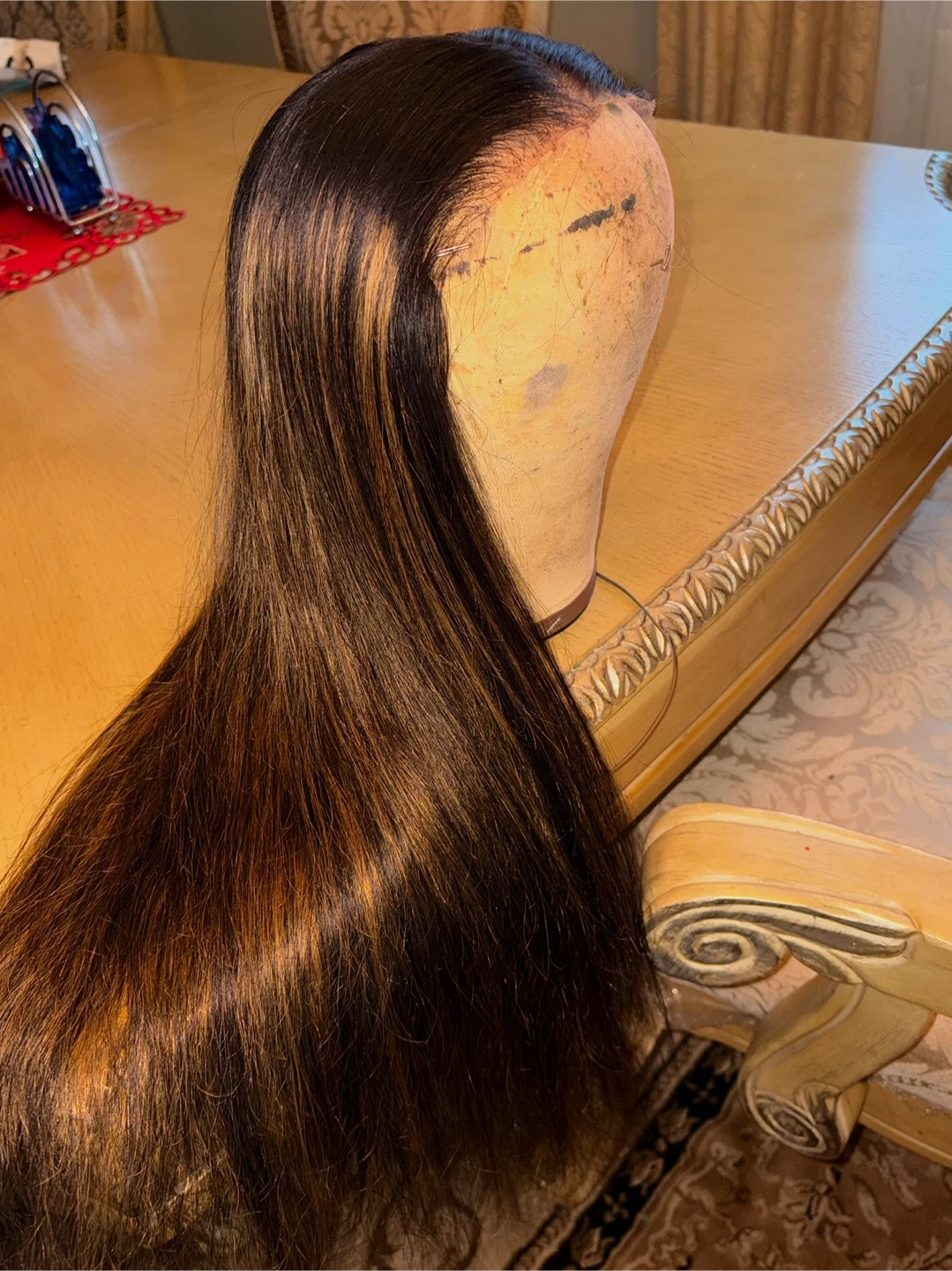 Dark Root Brown Balayage Highlight 7x5 glueless Lace Front Wig