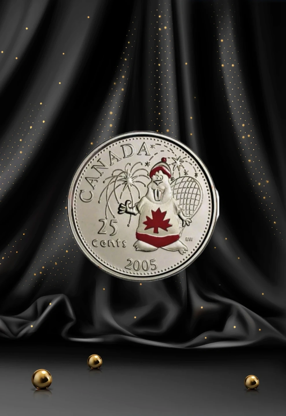 Canada: 2005 25 Cent Canada Day Coloured Quarter with Beaver