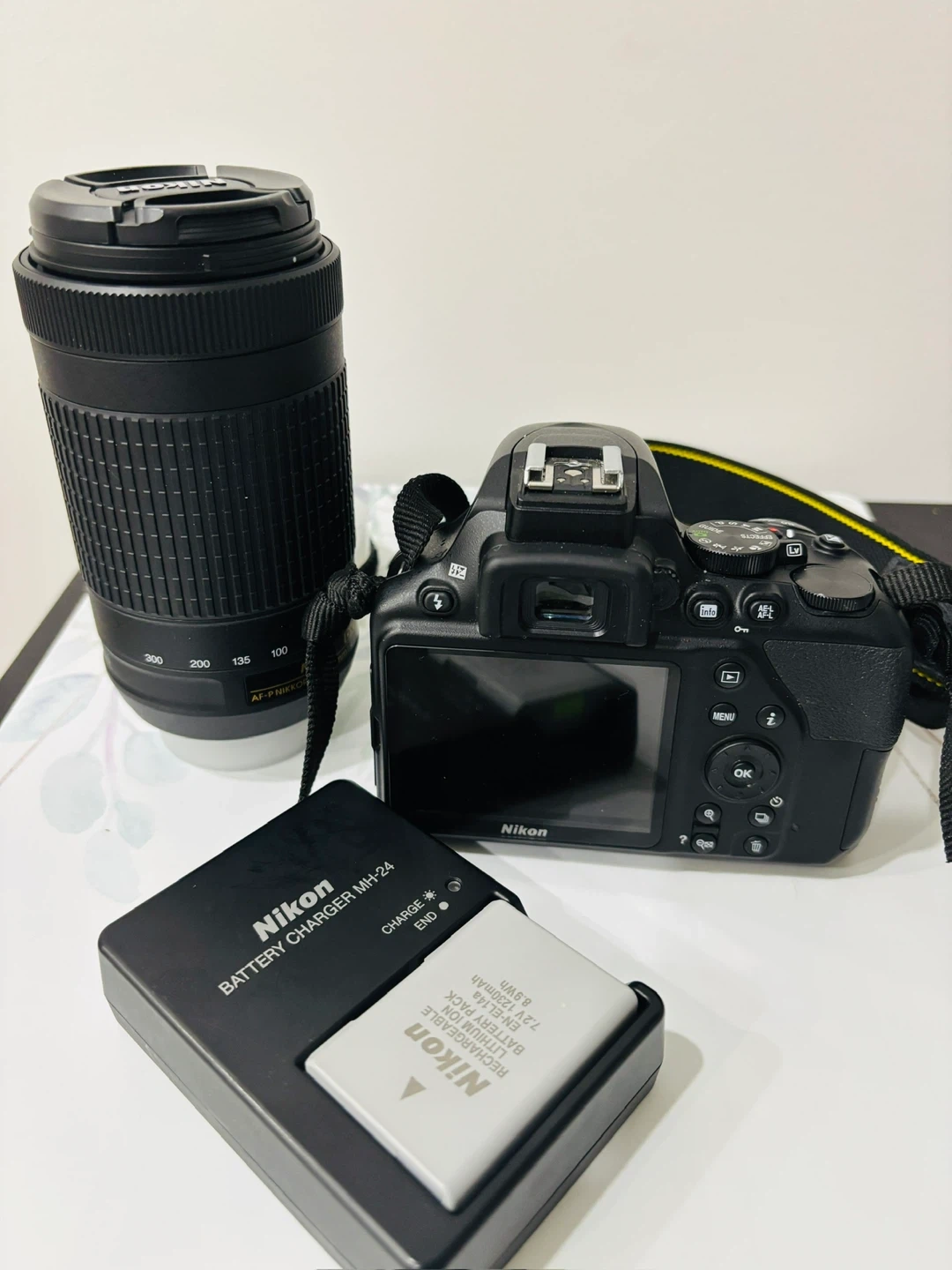 This is a Nikon D3500 DSLR camera. It comes with an AF-P DX Nikkor 70-300mm f/4.5-6.3G ED lens, AF-P DX NIKKOR 18-55mm f/3.5-5.6G