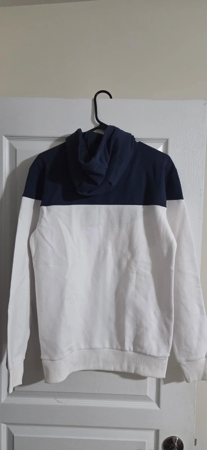 Ellesse full zip hoodie in a stylish navy and white colour block design. Perfect for layering or wearing on its own. Never worn, in perfect condition. Smoke free environment.