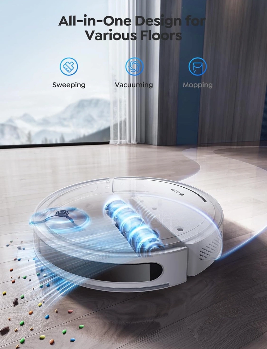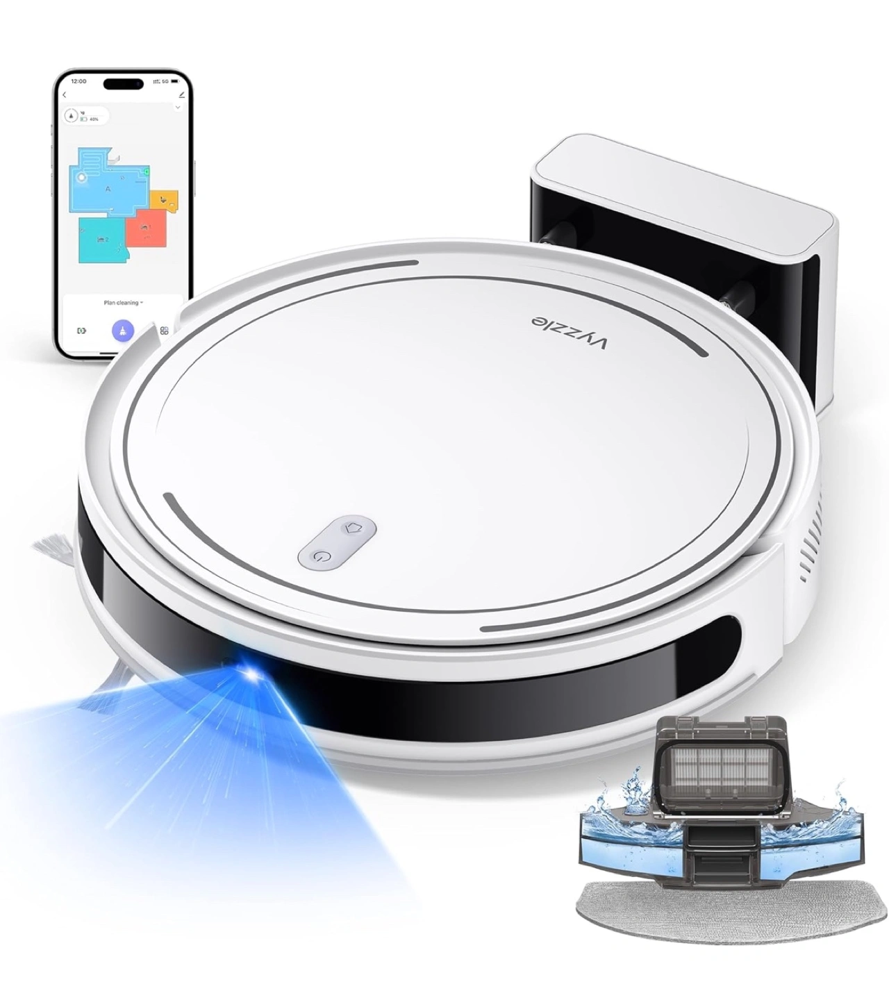 289Smart robot vacuum cleaner. 5000Pa powerful suction. Features app control and self-emptying dustbin. White colour. Includes charging dock.