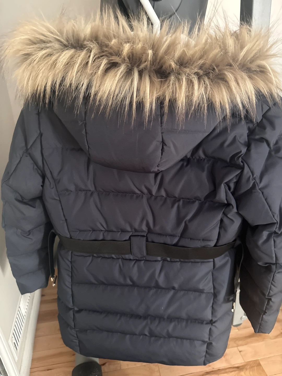 Mango Kids Dark Blue Puffer Coat with Fur Hood - Size 11-12