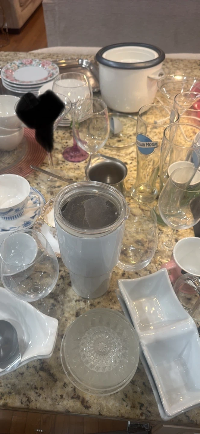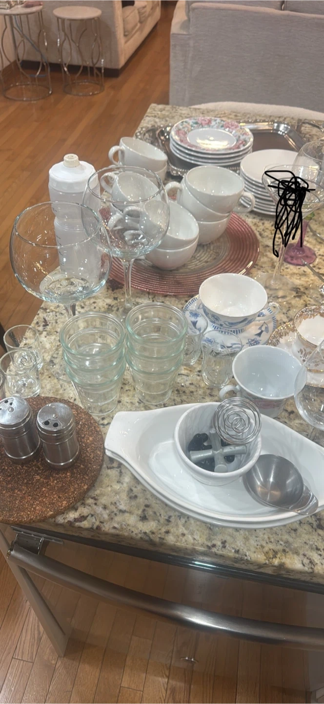 Free mixed lot of kitchenware items! Includes dishes, glasses, mugs, and other assorted items. Great for stocking up your kitchen or replacing old items. All in good, usable condition