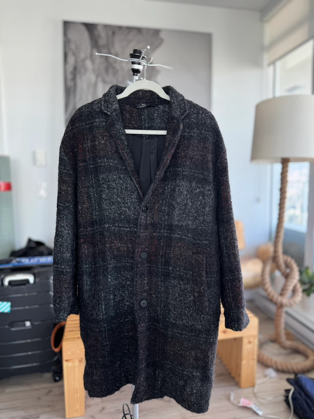 Made in Morocco. Selling a Zara wool blend coat in size small. It's in great condition and perfect for the cooler weather. The coat is made in Morocco and features a stylish design. It's a great addition to any wardrobe!