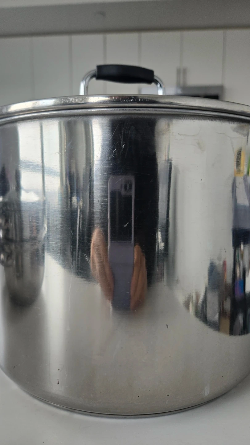 A sturdy stainless steel stock pot with a glass lid. It's suitable for boiling large batches of pasta or making soup. This pot is a great addition to any kitchen for everyday cooking needs.