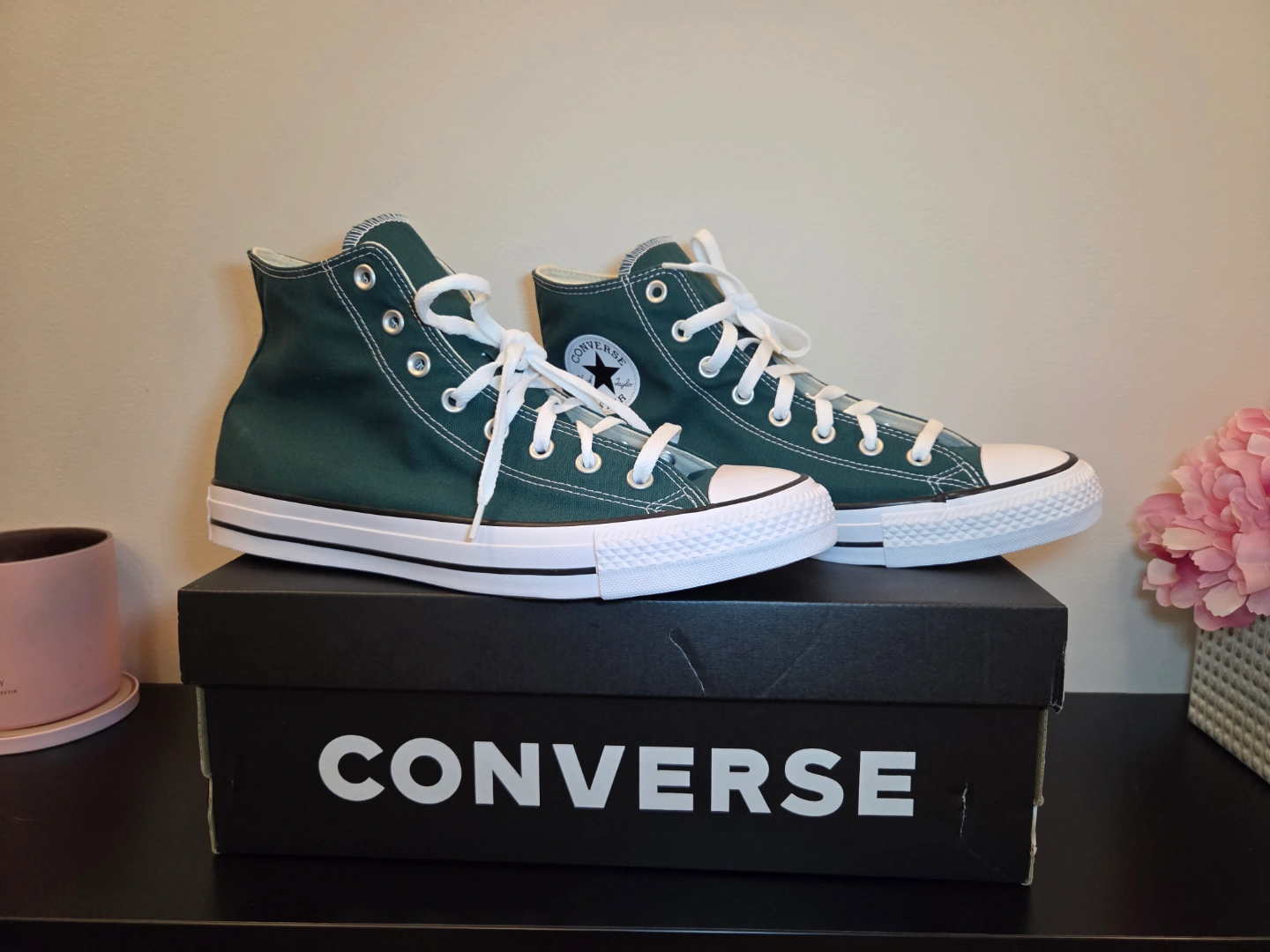 Dark green high-top Converse sneakers. Size 11. BRAND NEW.