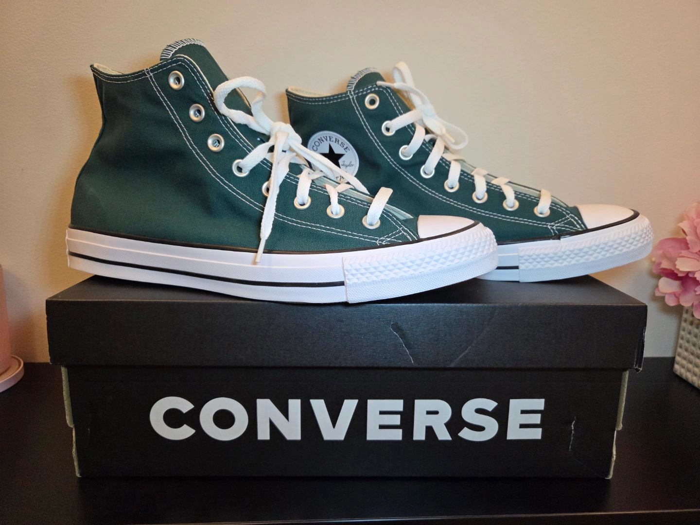 Dark green high-top Converse sneakers. Size 11. BRAND NEW.
