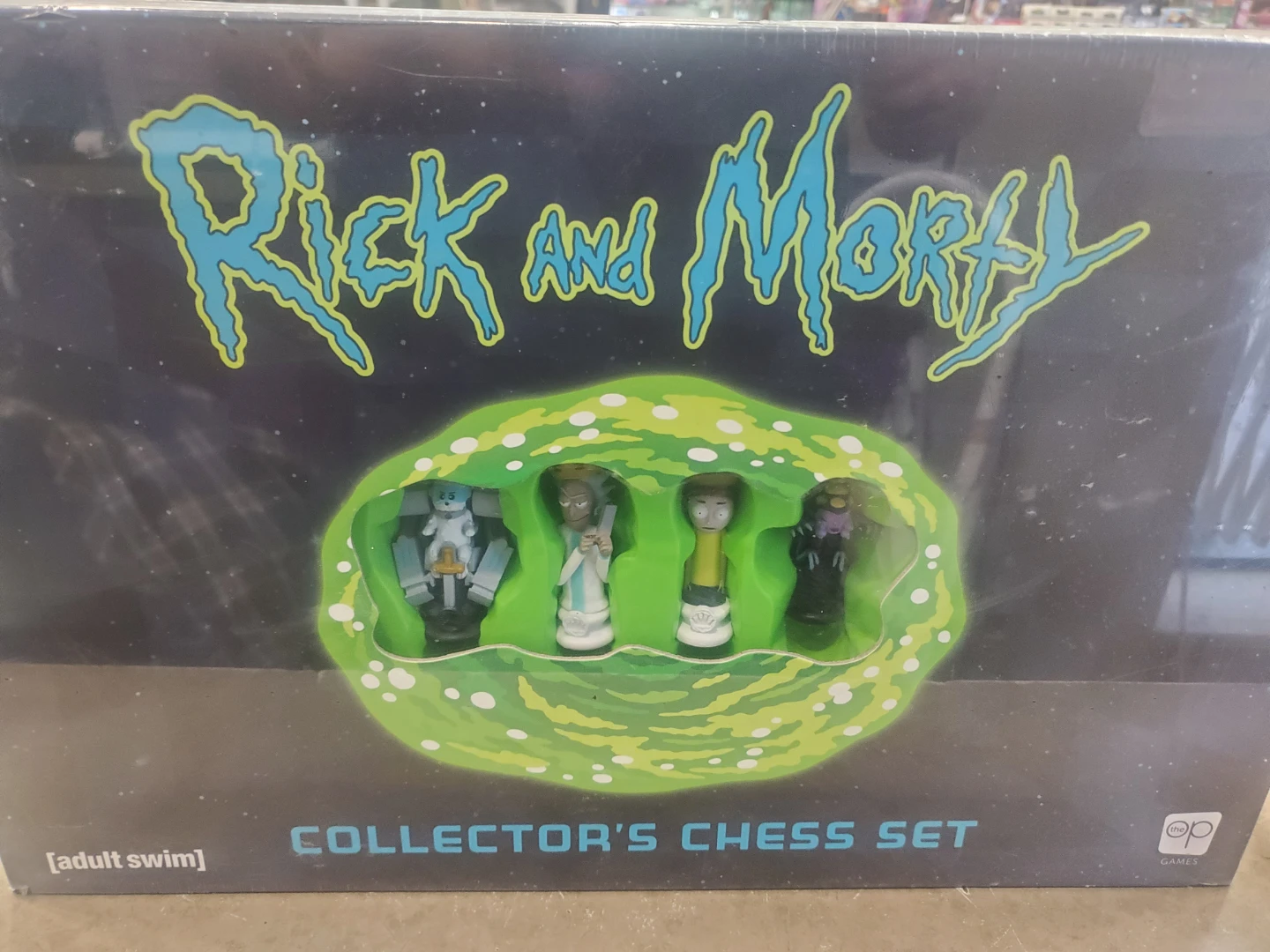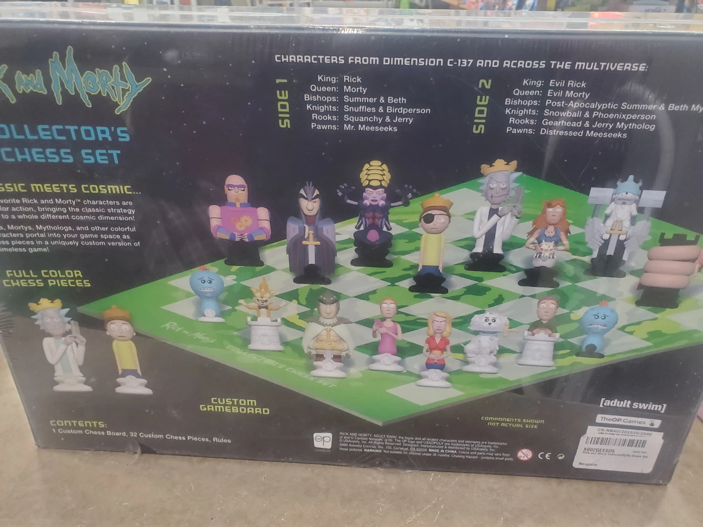 Selling a brand new Rick and Morty Collector's Chess Set! This set brings your favourite characters from Dimension C-137 and across the multiverse to your game space. Includes a custom gameboard and 32 custom chess pieces in full colour