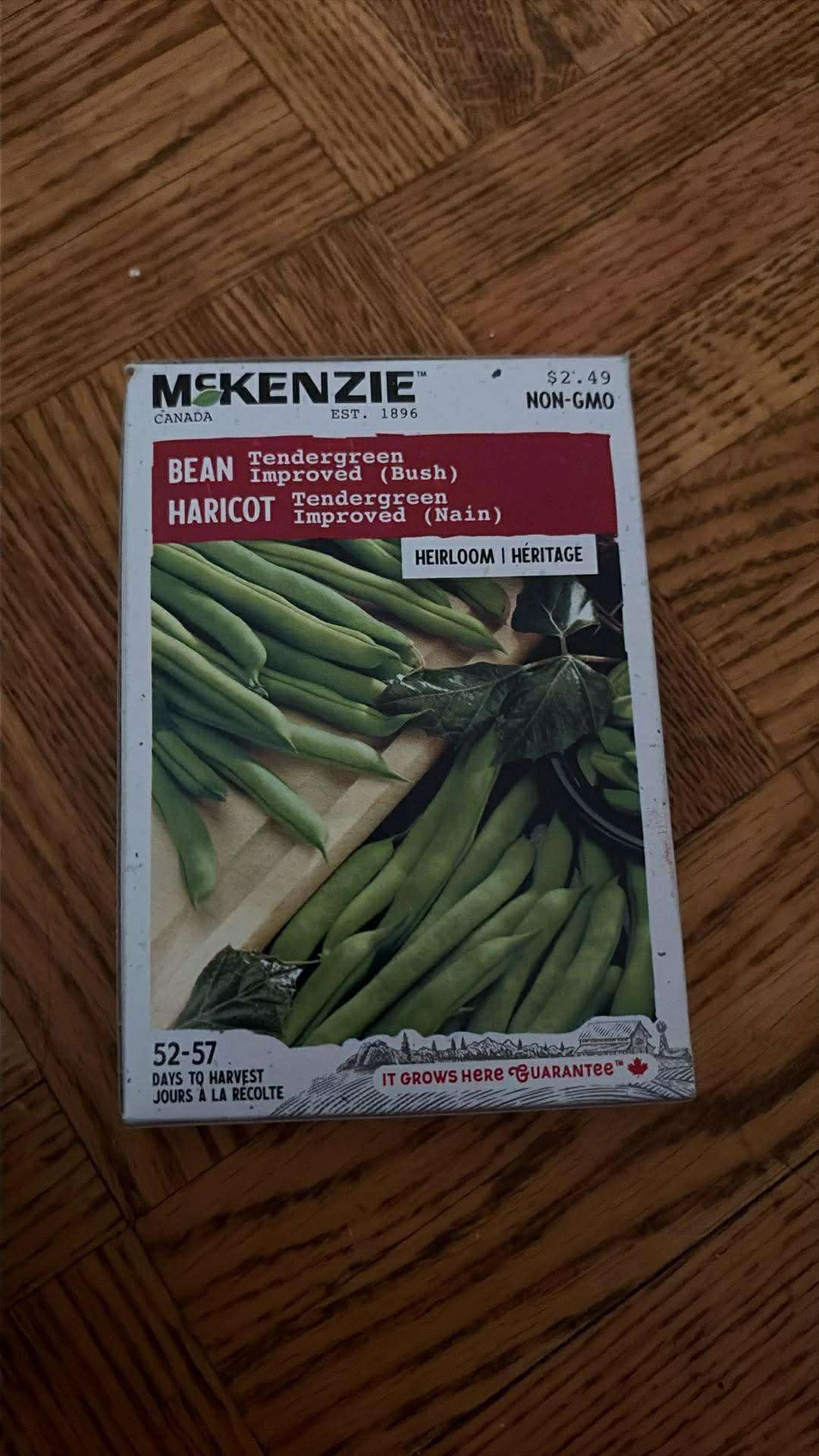 Selling a packet of McKenzie Tendergreen Bean seeds! They're non-GMO and heirloom variety. According to the package, harvest time is between 52-57 days. It grows here guarantee!