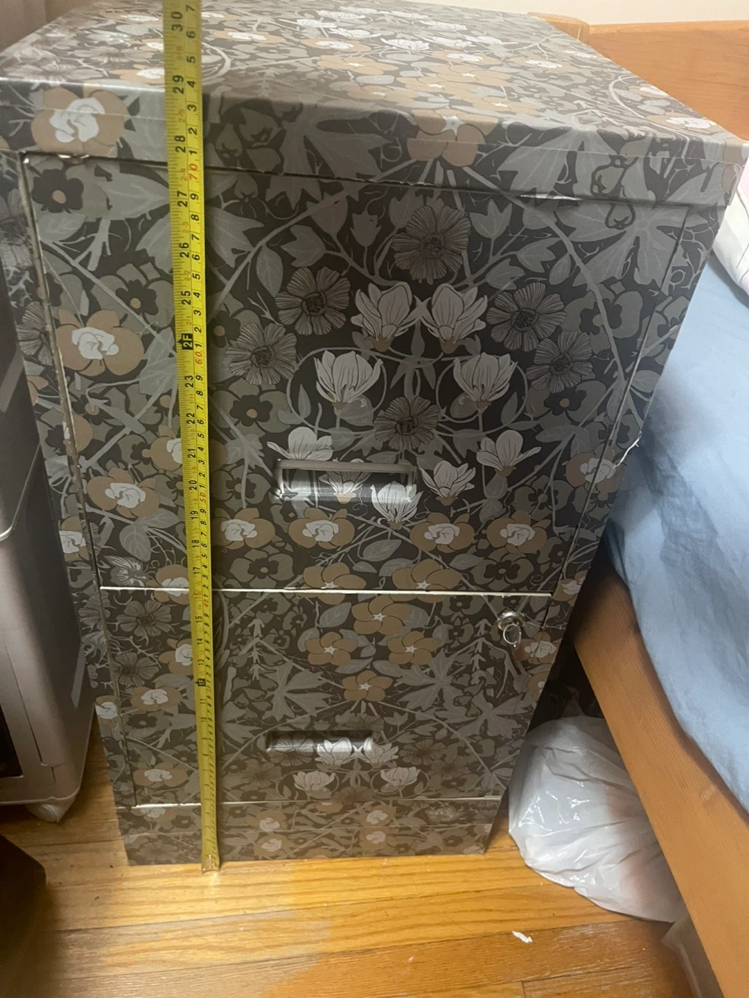 Overall in good condition. One key to lock the cabinet and one hanging filing frame (check last photo).