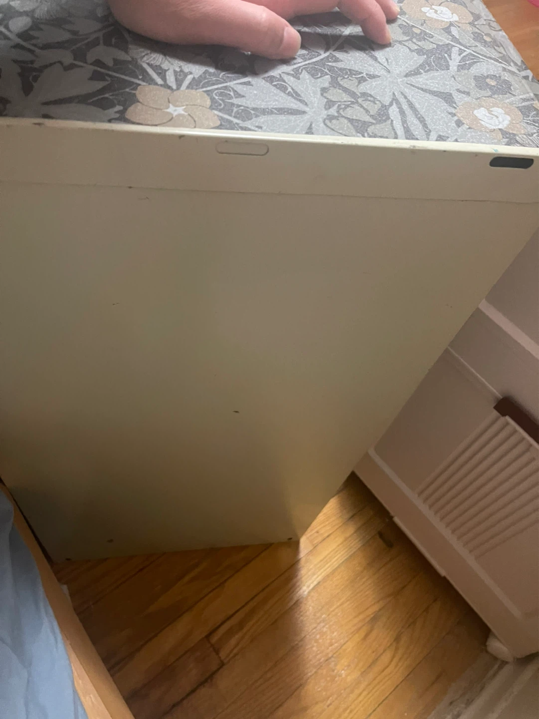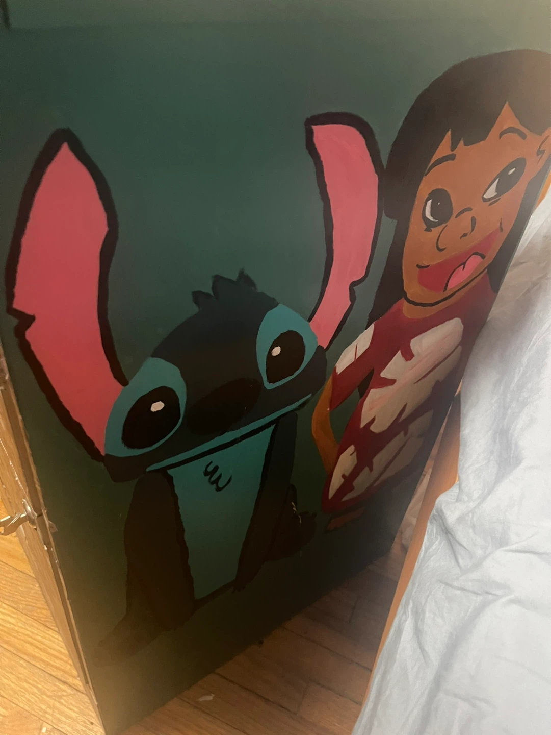 On the other side of the cabinet there is a painting of Lilo and Stitch (acrylic paint) may be a bit harder to take off.