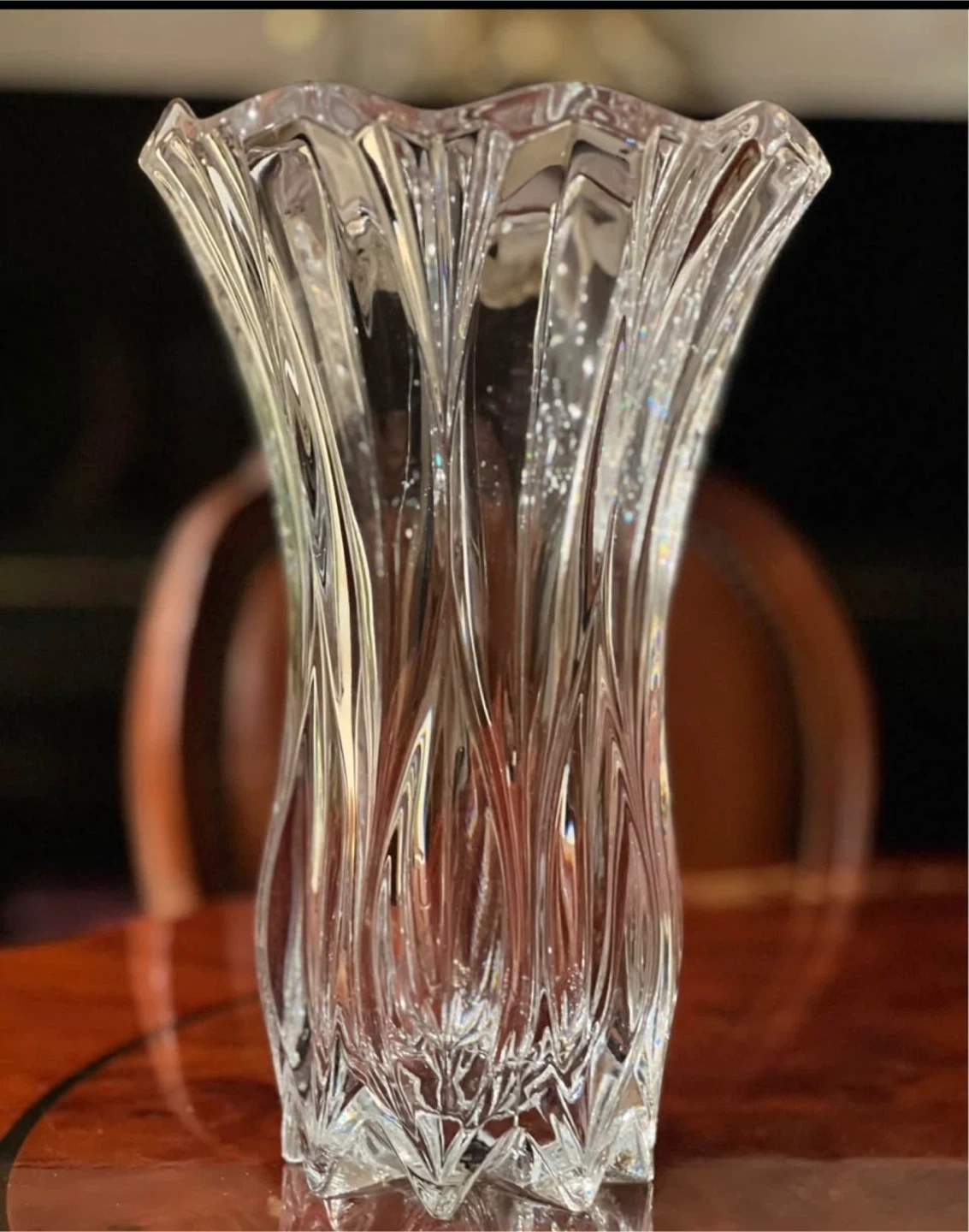 Selling a beautiful crystal vase! It's in great condition and would look lovely as a centrepiece or accent in any room. Its elegant design catches the light beautifully, adding a touch of sophistication to your home decor