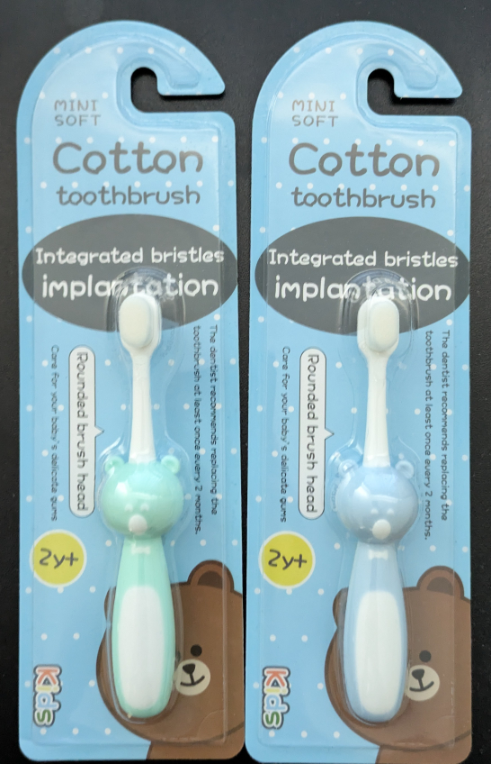 Selling 2 brand new Mini Soft Cotton Toothbrushes for kids! It features integrated bristles implantation and a rounded brush head, designed to care for your baby's delicate gums.