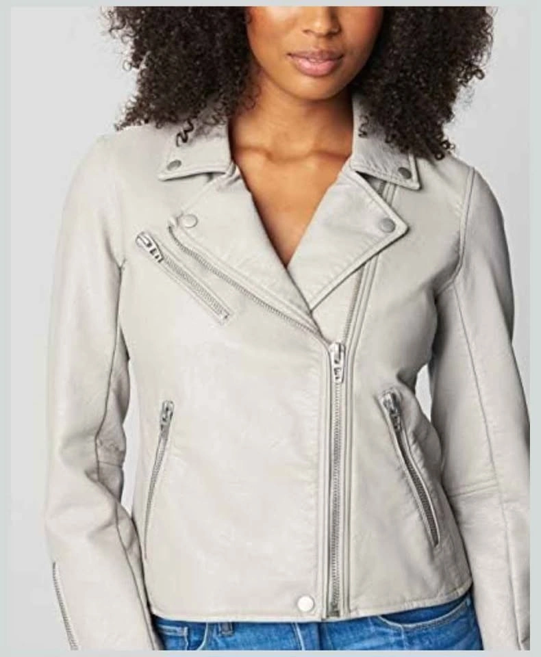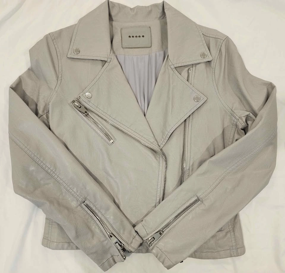 BLANKNYC Gray Faux Leather Moto Jacket Size S
