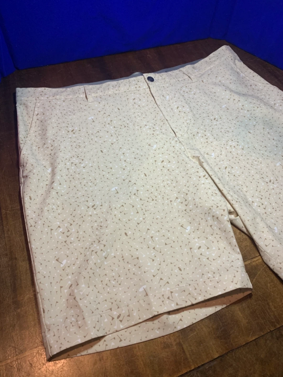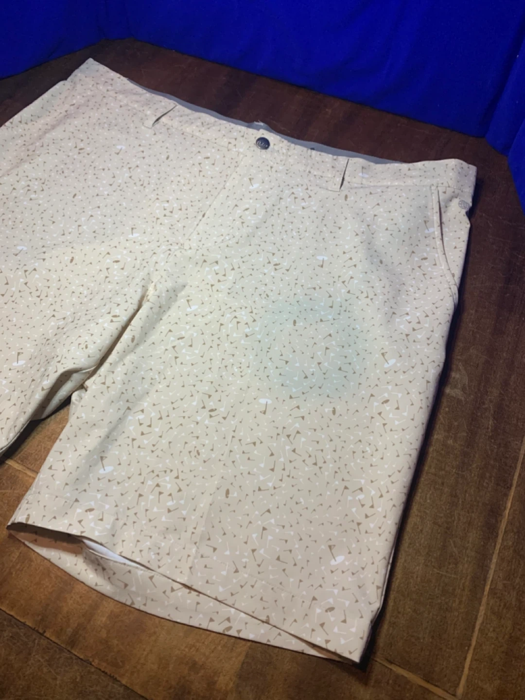 Men’s Adidas golf shorts in great condition. Lightweight performance material that’s comfortable and breathable on the course. Stylish beige pattern with subtle golf graphics.