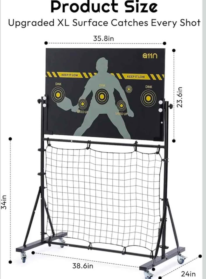 A11N Pickleball Practice Rebounder. Take your pickleball game to new heights. Hone your forehands, backhands, dinks with this all-in-one training solution. Perfect for kitchen control and beyond.