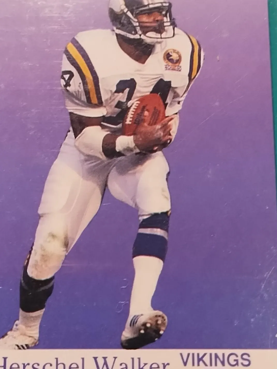 Vintage football card featuring Herschel Walker in his Vikings uniform. A great collectible for any football fan!