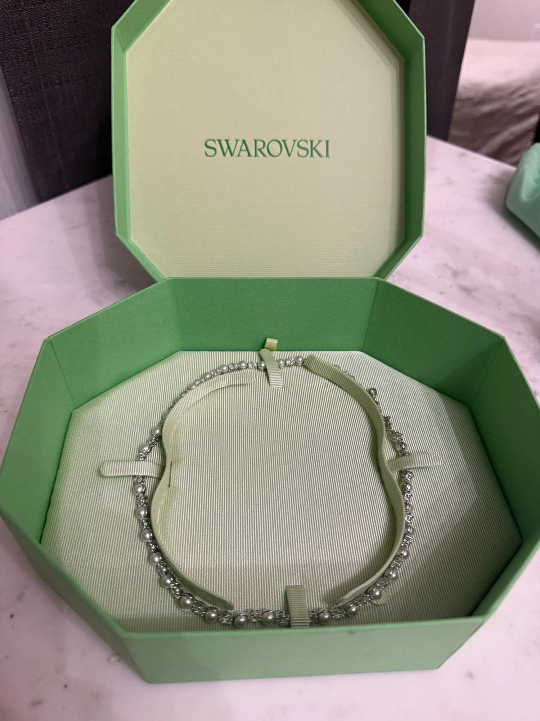BRAND NEW Swarovski, diamond and pearl necklace. NEVER WORN. BOX INCLUDED.