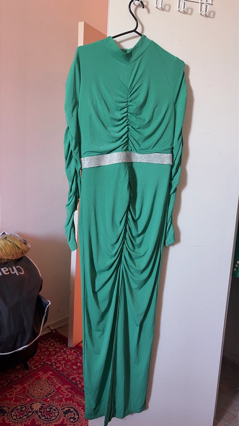 Green Maxi Dress with Rhinestone Belt both 30$