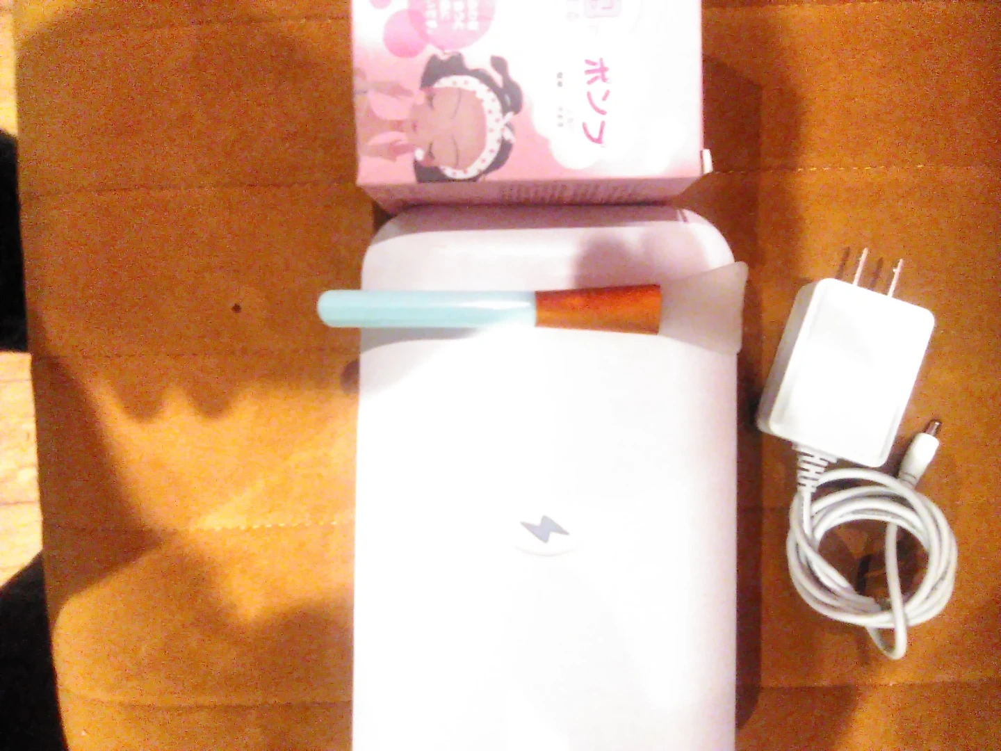 This is a PhoneSoap Model No. 500-1 UV sanitizer. It comes with a charging adapter. Includes a spatula and some other small accessories.