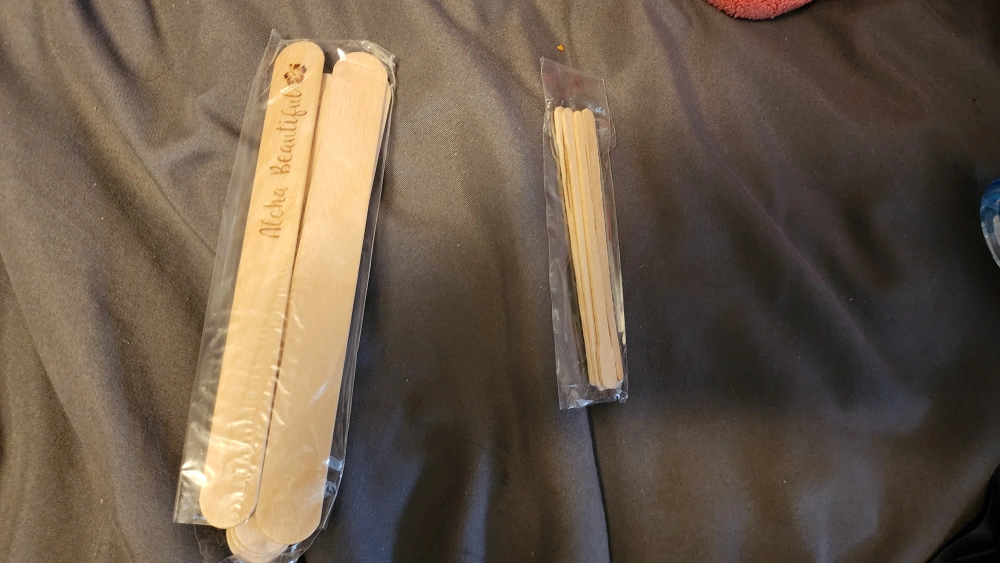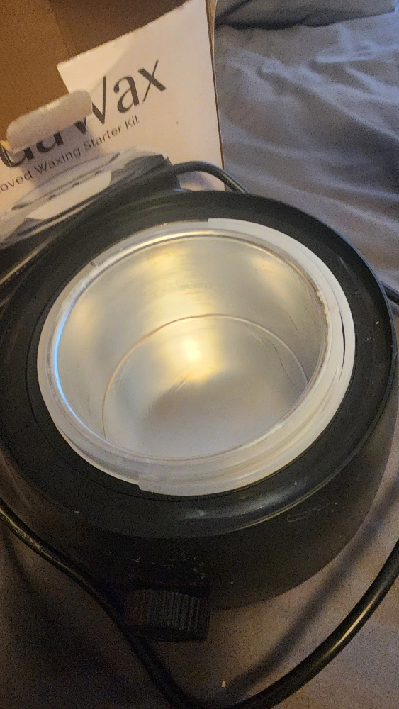Wax warmer with a clear lid, four different wax bead bags, two spray bottles, and two wooden spatulas. Everything you need to get started waxing. used it once or twice only.