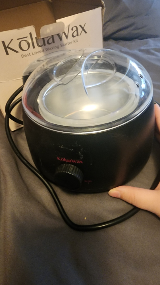 Wax warmer with a clear lid, four different wax bead bags, two spray bottles, and two wooden spatulas. Everything you need to get started waxing. used it once or twice only.