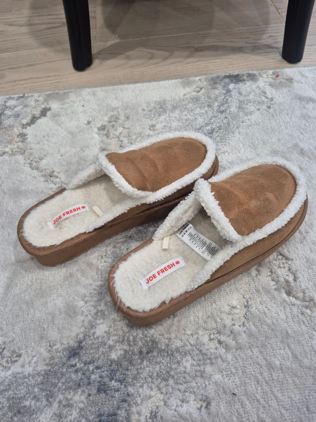 Cozy Joe Fresh slippers! These are in great shape and ready to keep your feet warm on chilly days. They have a soft, fuzzy lining and a durable sole.