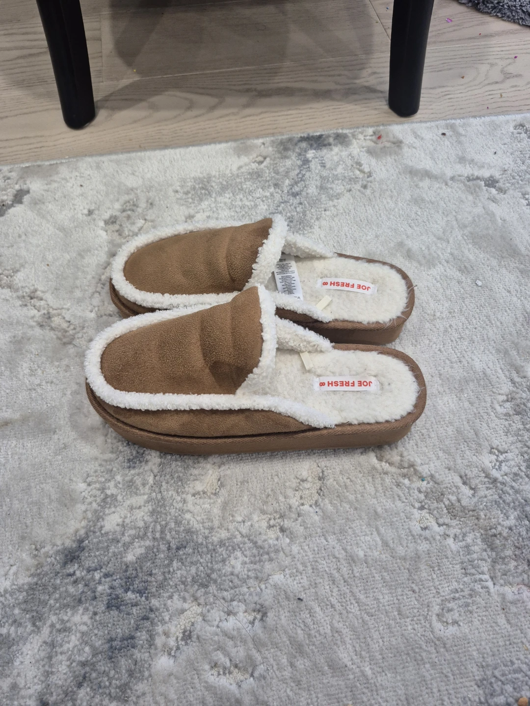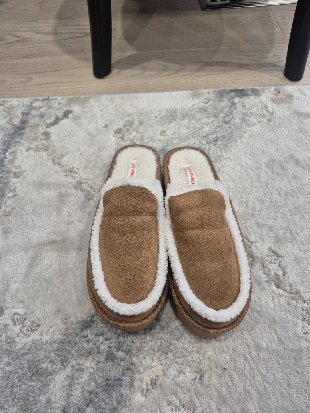 Cozy Joe Fresh slippers! These are in great shape and ready to keep your feet warm on chilly days. They have a soft, fuzzy lining and a durable sole.