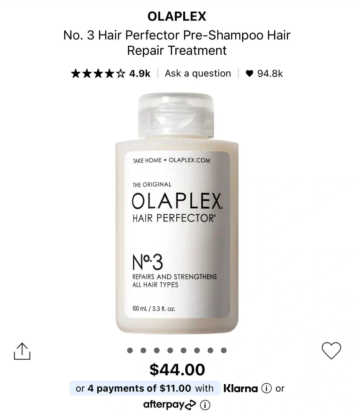 Selling an Olaplex No. 3 Hair Perfector. This is the original hair perfector that repairs and strengthens all hair types. It comes in a 100ml / 3.3 fl. oz size. Originally bought for $44.00