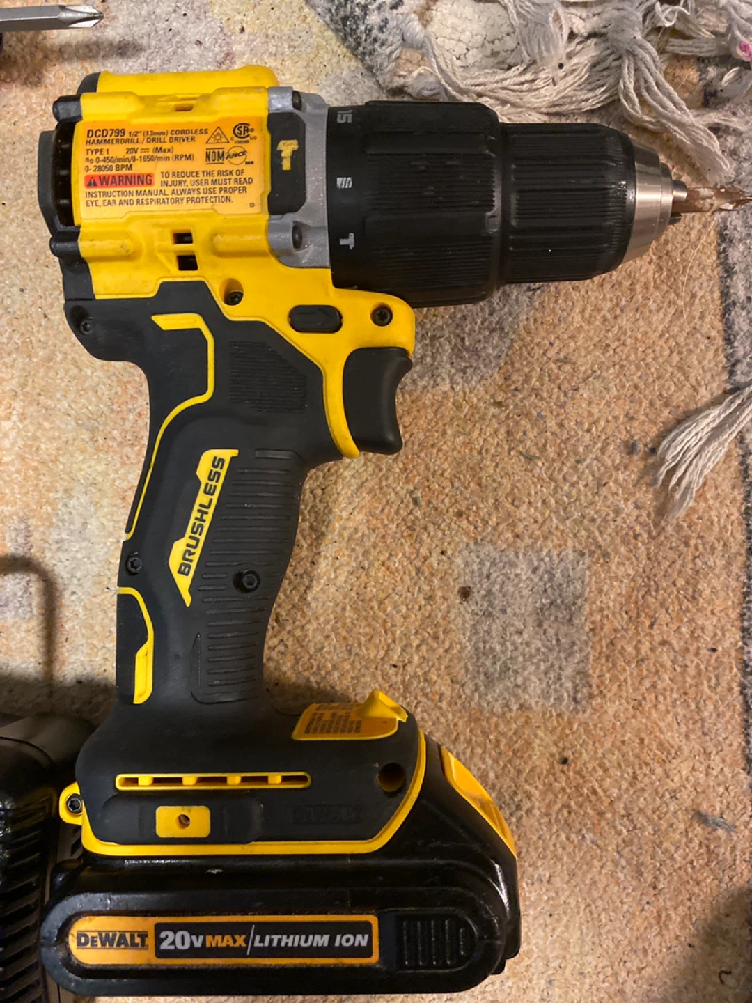 DeWalt 20V MAX cordless drill and impact driver set. Includes DCB115 charger and one 20V MAX lithium-ion batteries. Great for DIY projects or professional use!
