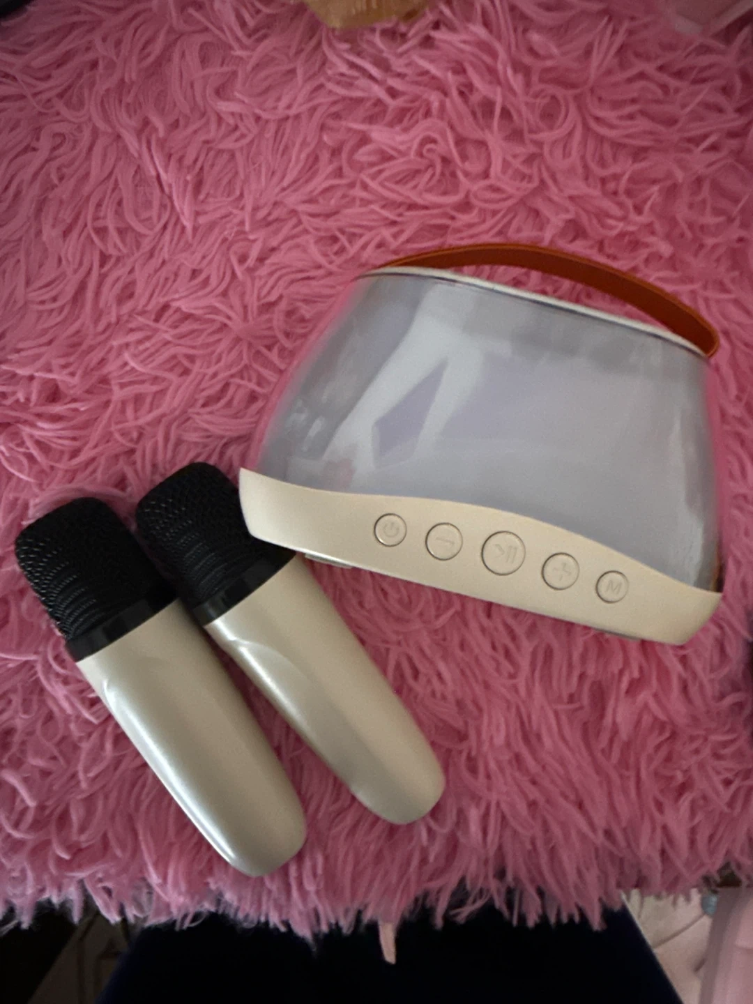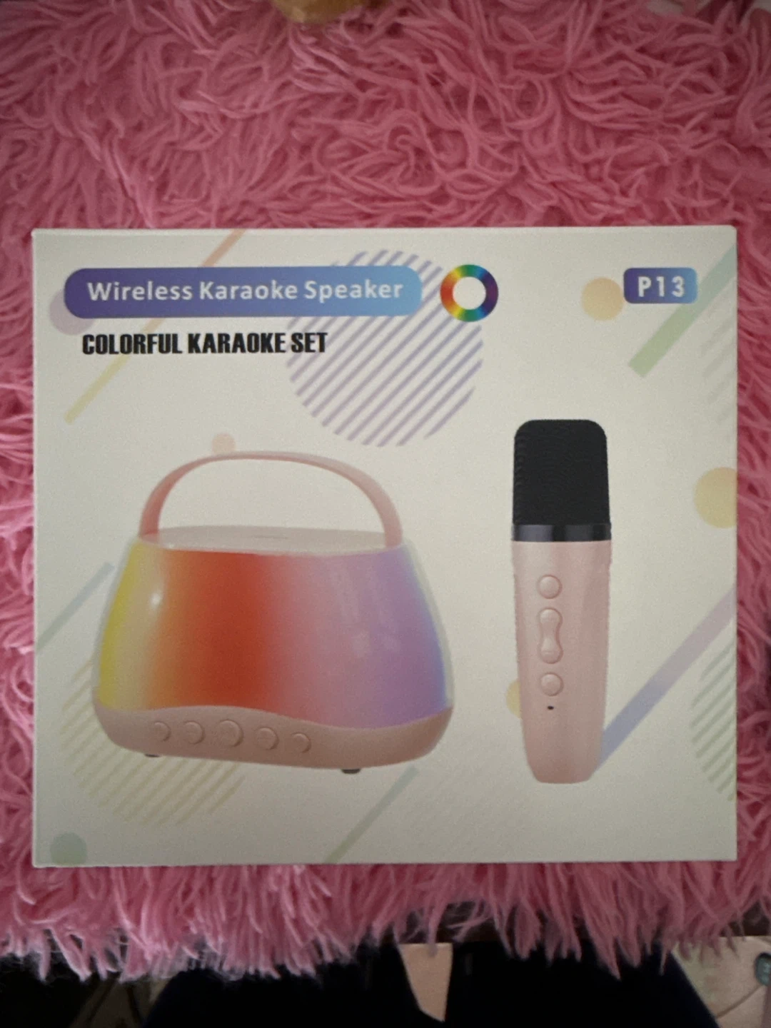 This is a wireless karaoke speaker set with a colorful design. It includes one microphone for sing-alongs. Enjoy music and fun with this portable karaoke solution!