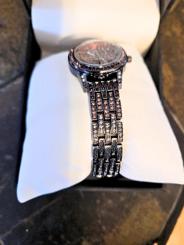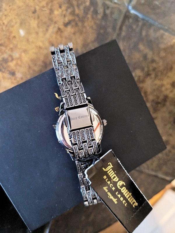 Brand new in the box with tags. Retail value $350. Model JC/1144MTBK, Swarovski Crystals. Case diameter 28mm. Main colors: Black, Red, Pink, White. Quartz battery. Case material: Stainless Steel. Glass: Mineral. Pick up near Sheppard & Don Mills. Cash accepted.