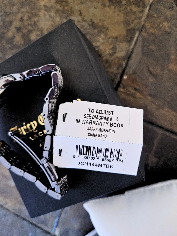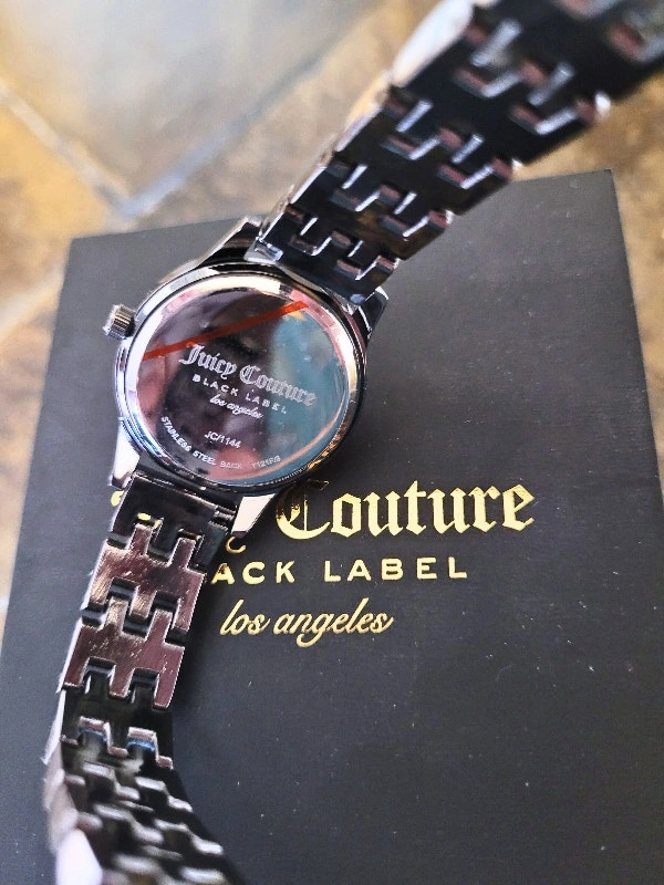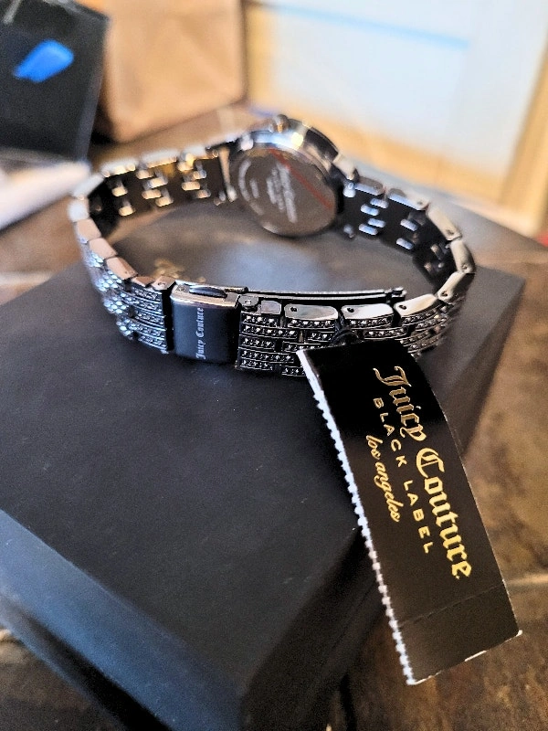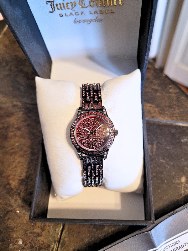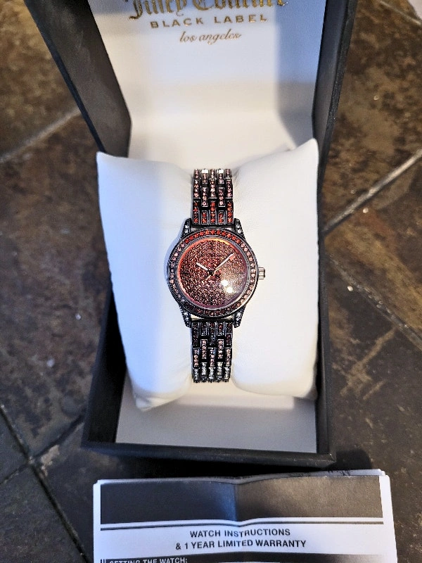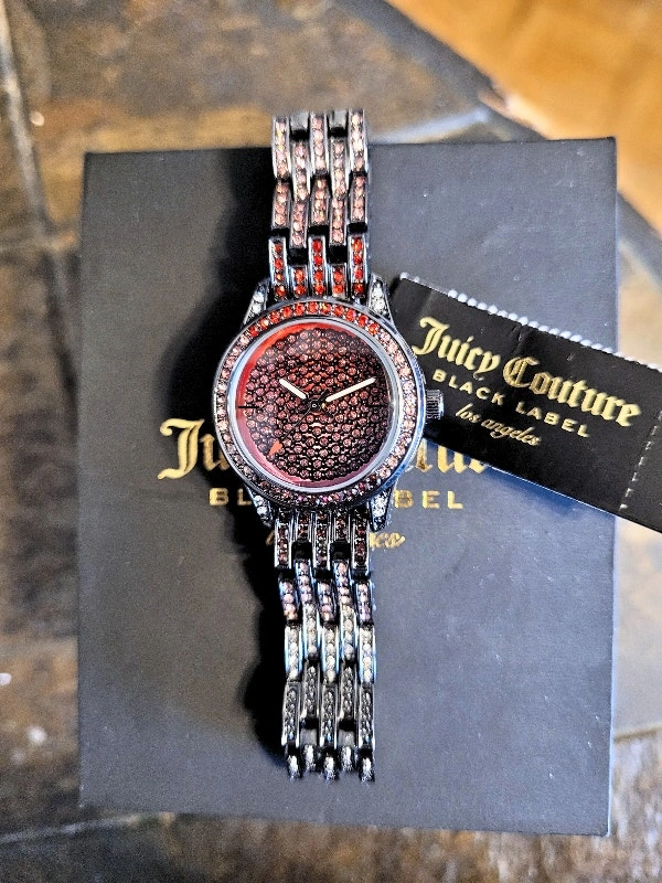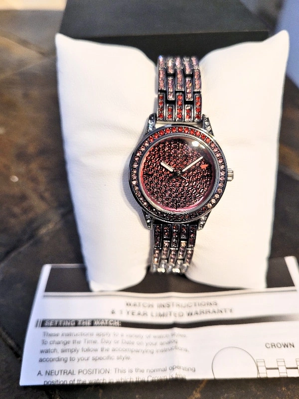 Brand new in the box with tags. Retail value $350. Model JC/1144MTBK, Swarovski Crystals. Case diameter 28mm. Main colors: Black, Red, Pink, White. Quartz battery. Case material: Stainless Steel. Glass: Mineral. Pick up near Sheppard & Don Mills. Cash accepted.