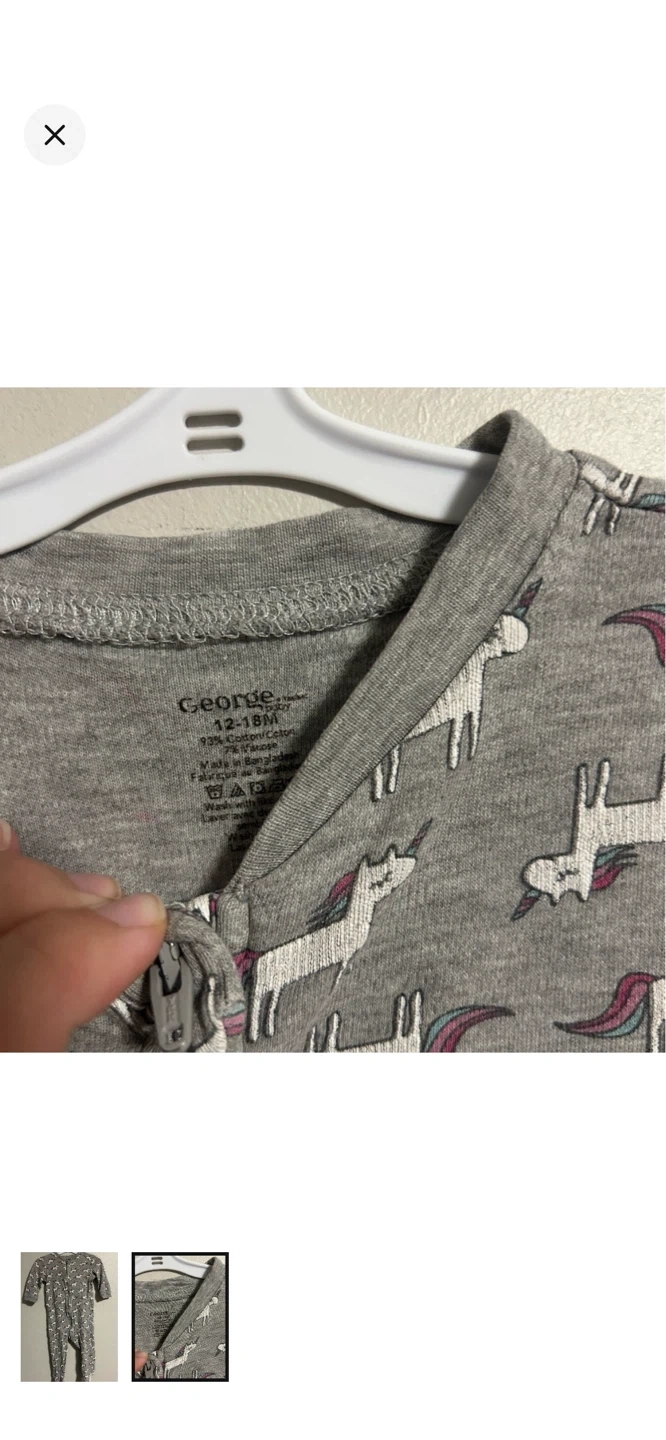 George brand. Zip up sleeper. Grey with unicorn print. Size 12/18m. Brand new condition $3