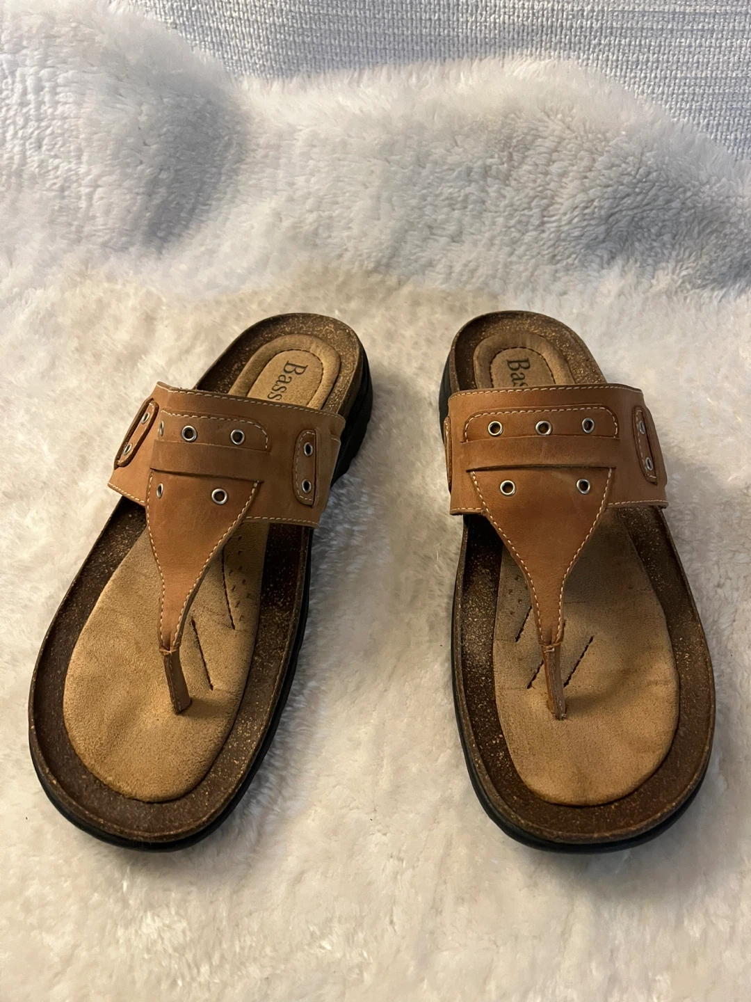 Bass Women's Tan Leather Thong Sandals Size 7.5