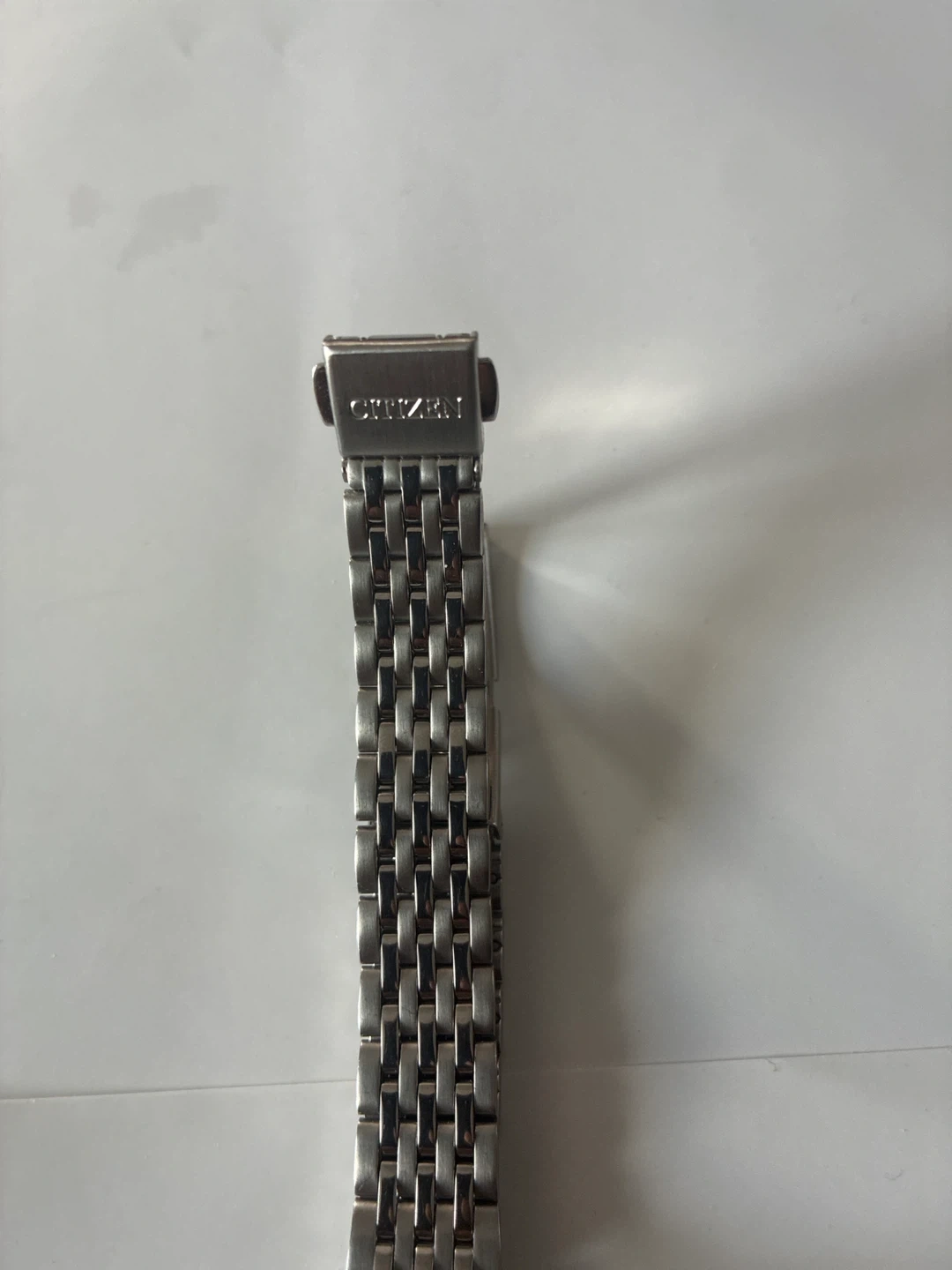 This is a Citizen Quartz women's watch. It features a silver-tone metal band and a black rectangular face with Roman numerals. It's a classic accessory for any outfit.