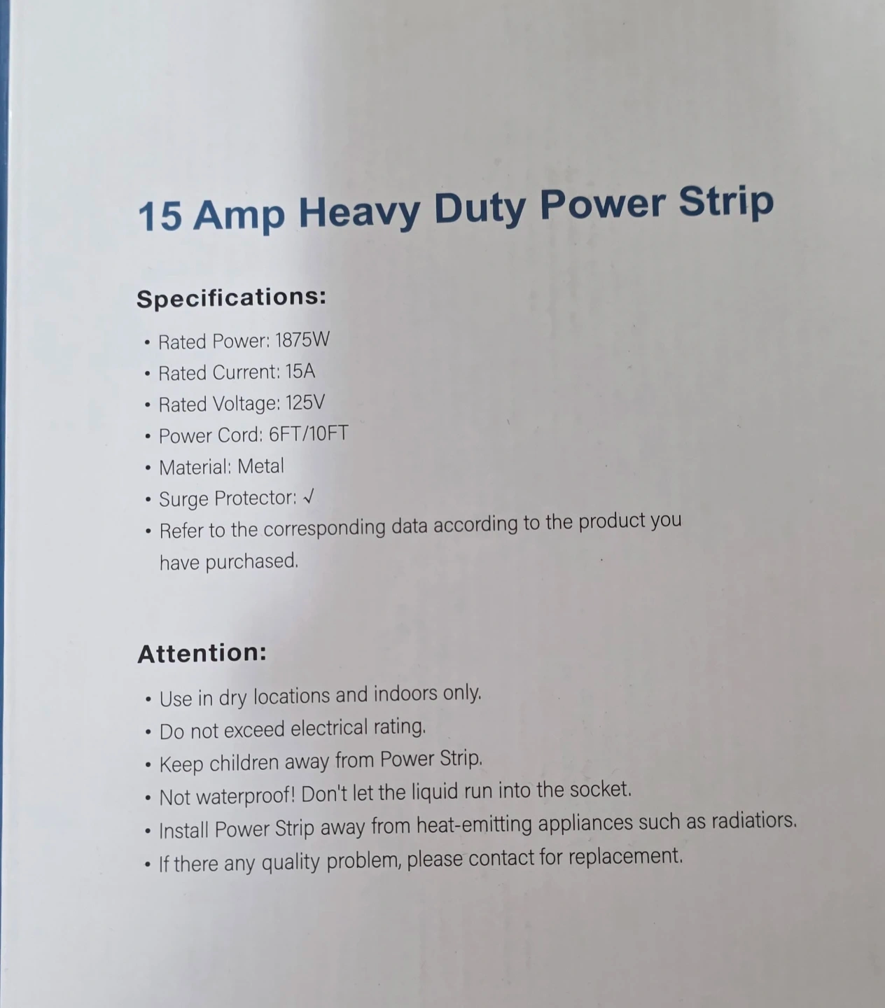 This is a brand new heavy duty metal power strip with surge protector featuring 8 grounded outlets and a 6-foot cord, perfect for home or office use. It offers a 15 Amp circuit breaker for overload protection.