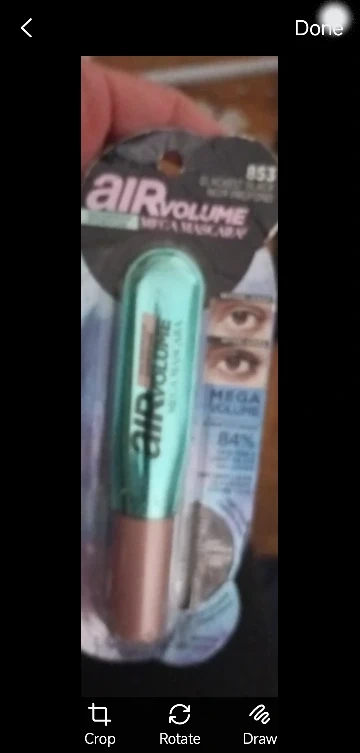 Rimmel Air Volume Mega Mascara in a teal shade. It's designed for mega volume. The packaging indicates 84% volume enhancement.